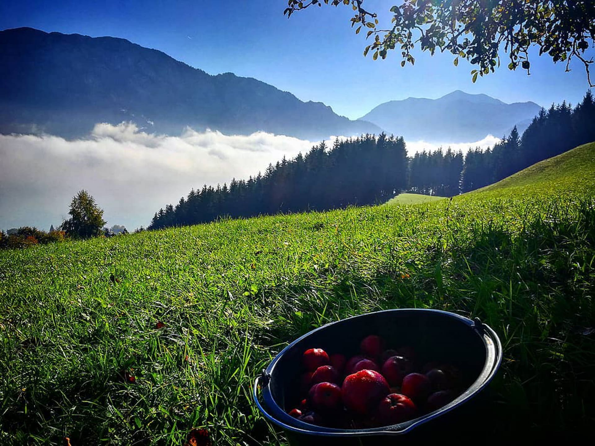 Für Ihre Verpflegung können Sie unsere hofeigenen Produkte wie unsere gute Milch, Apfel- und Birnenmost sowie selbsterzeugte Schnäpse bekommen!