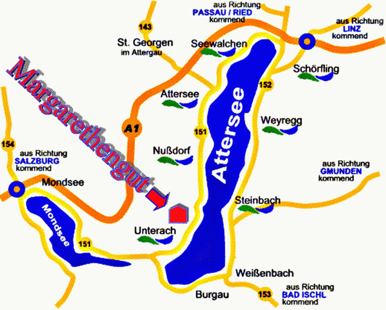 • Anreise mit Schiff möglich (Attersee-Schifffahrt, nächste Anlegestelle Stockwinkel und über dem Wanderweg in Richtung Egelsee ca. 25 Min. zu unserem Ferienhof gehen. (Bitte auf unseren Wegweiser „Margarethengut“ achten.)