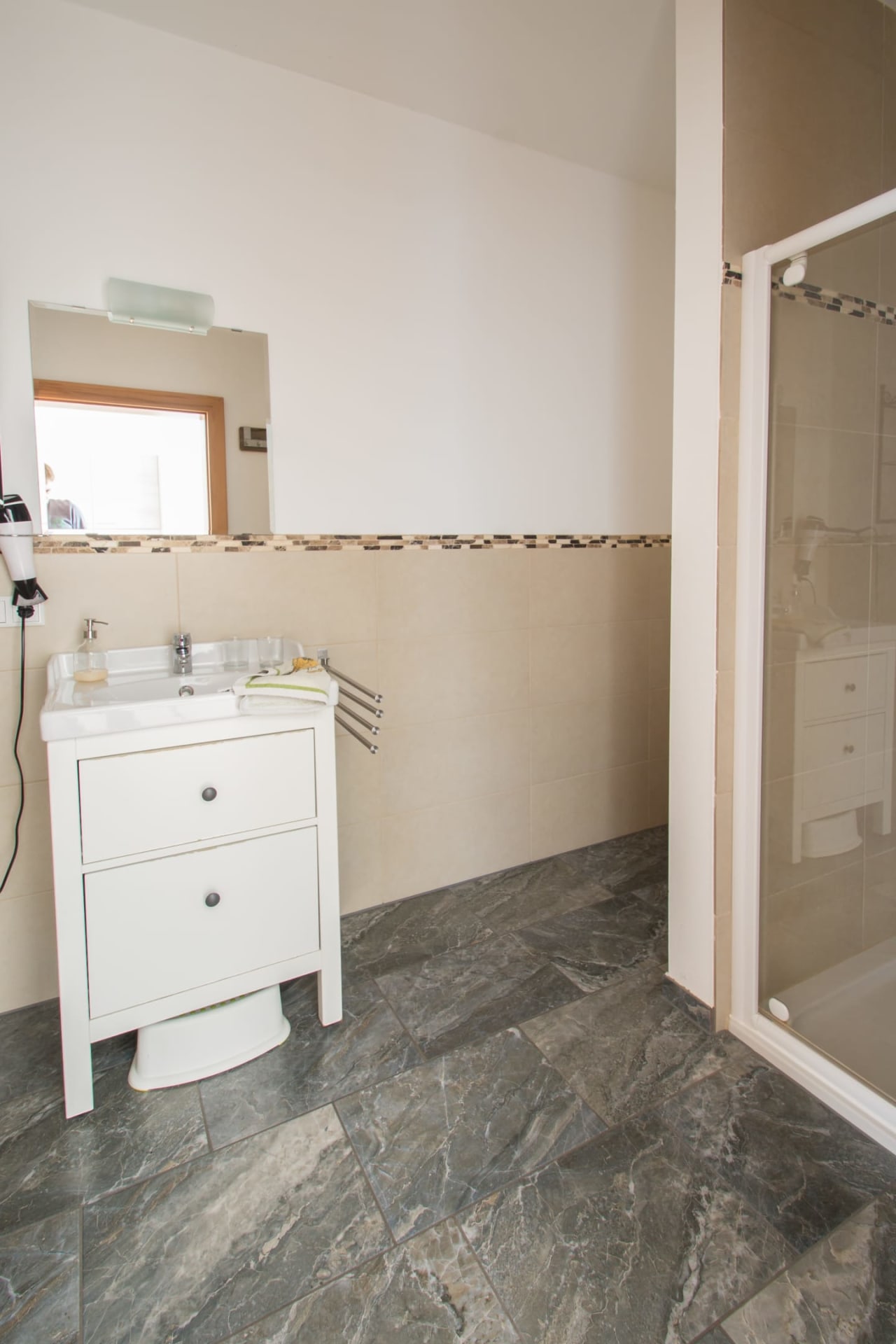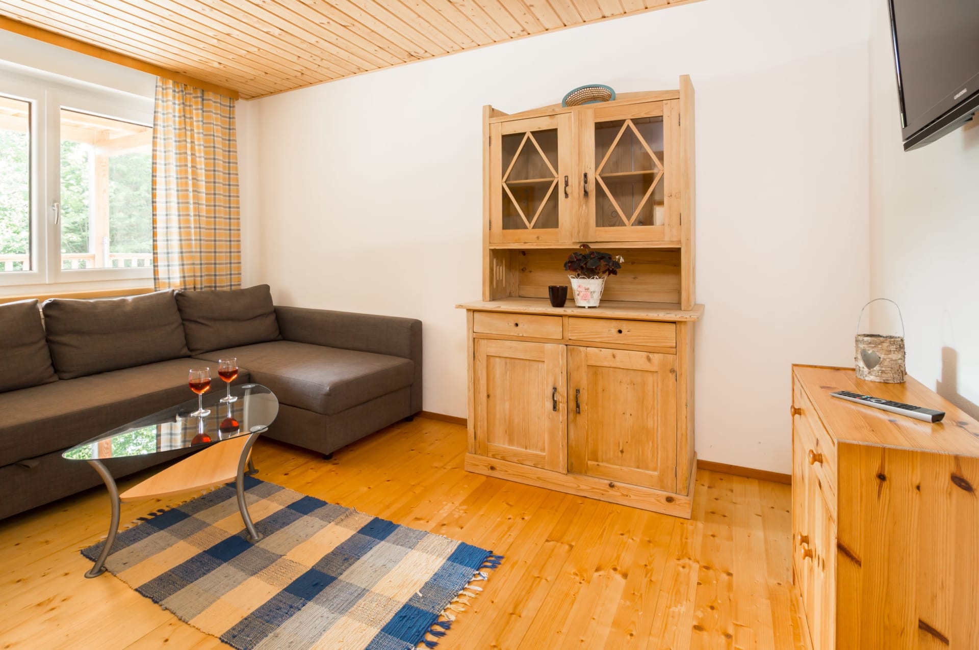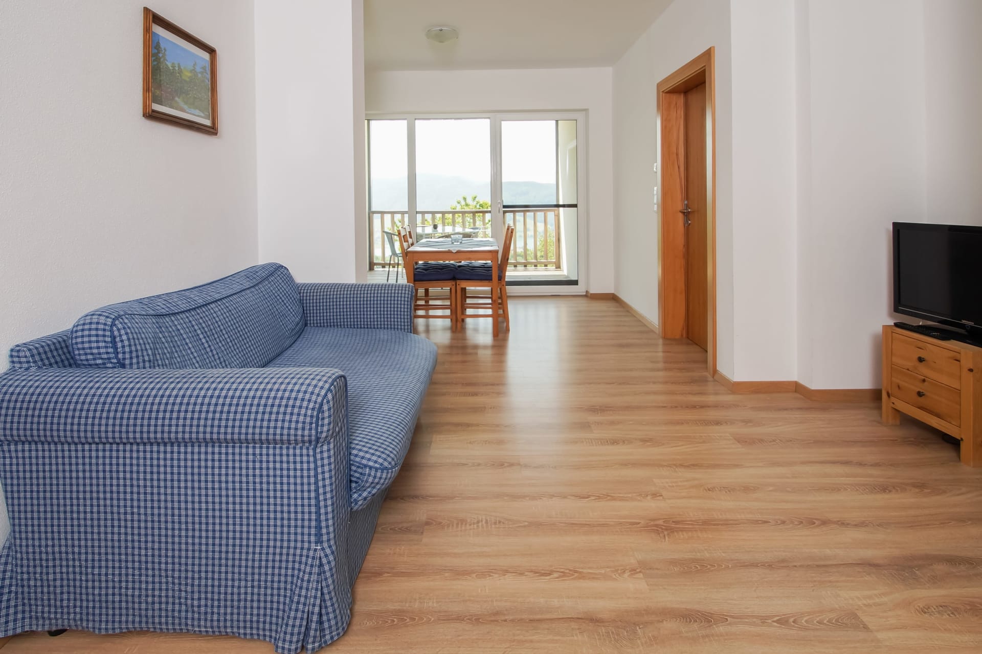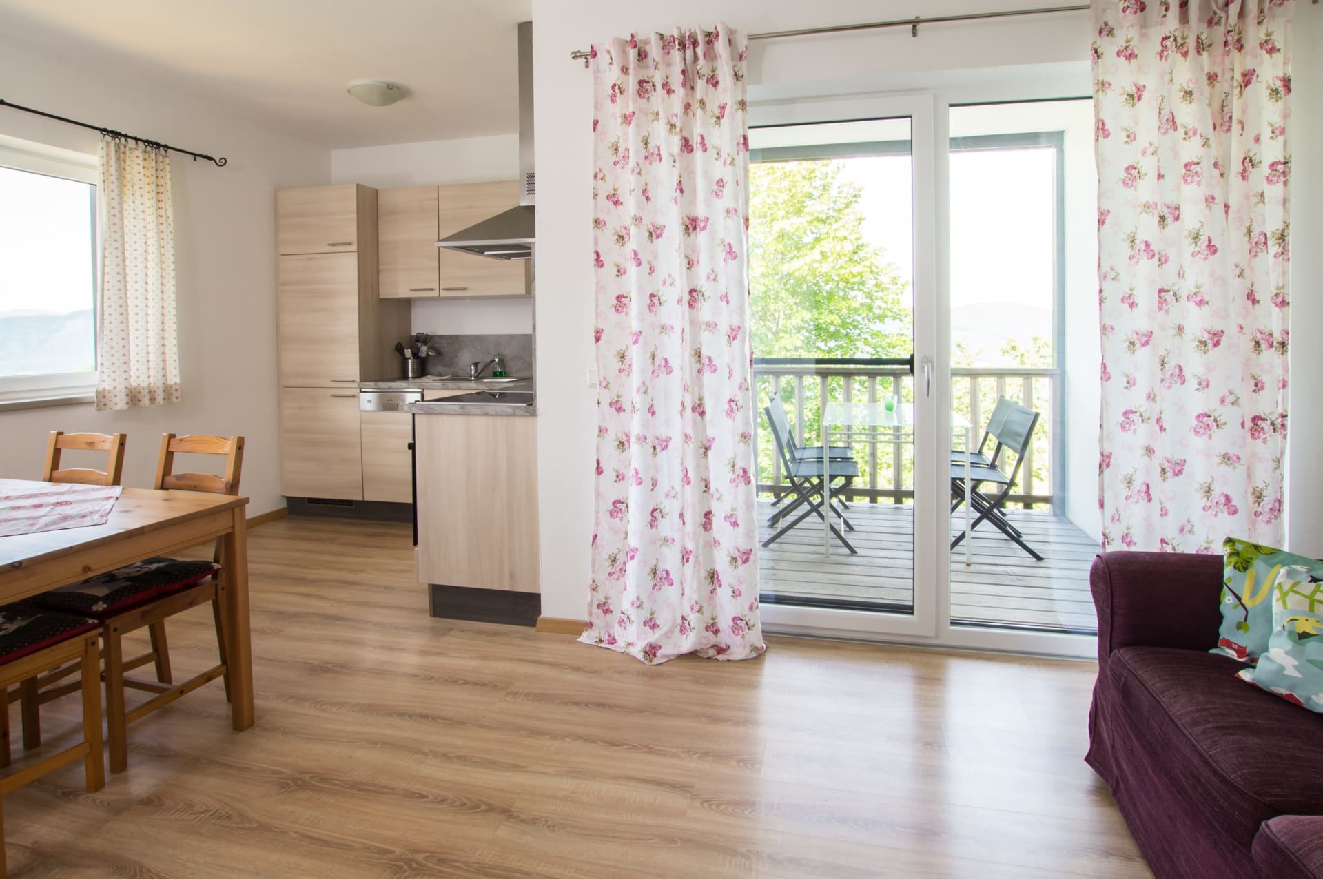 Zu diesem Ferienwohnungstyp zählen die Wohnungen Blaue Kolomandl, Violette Kolomandl, Graue Kolomandl und Orange Kolomandl. Jede Wohnung besteht aus Wohnküche, zwei Schlafzimmern, Bad, WC und Terrasse mit Blick auf den See. Die Wohnung Blaue Kolomandl verfügt noch über eine zweite Terrasse mit Blick auf die Wiesen vor dem Haus.