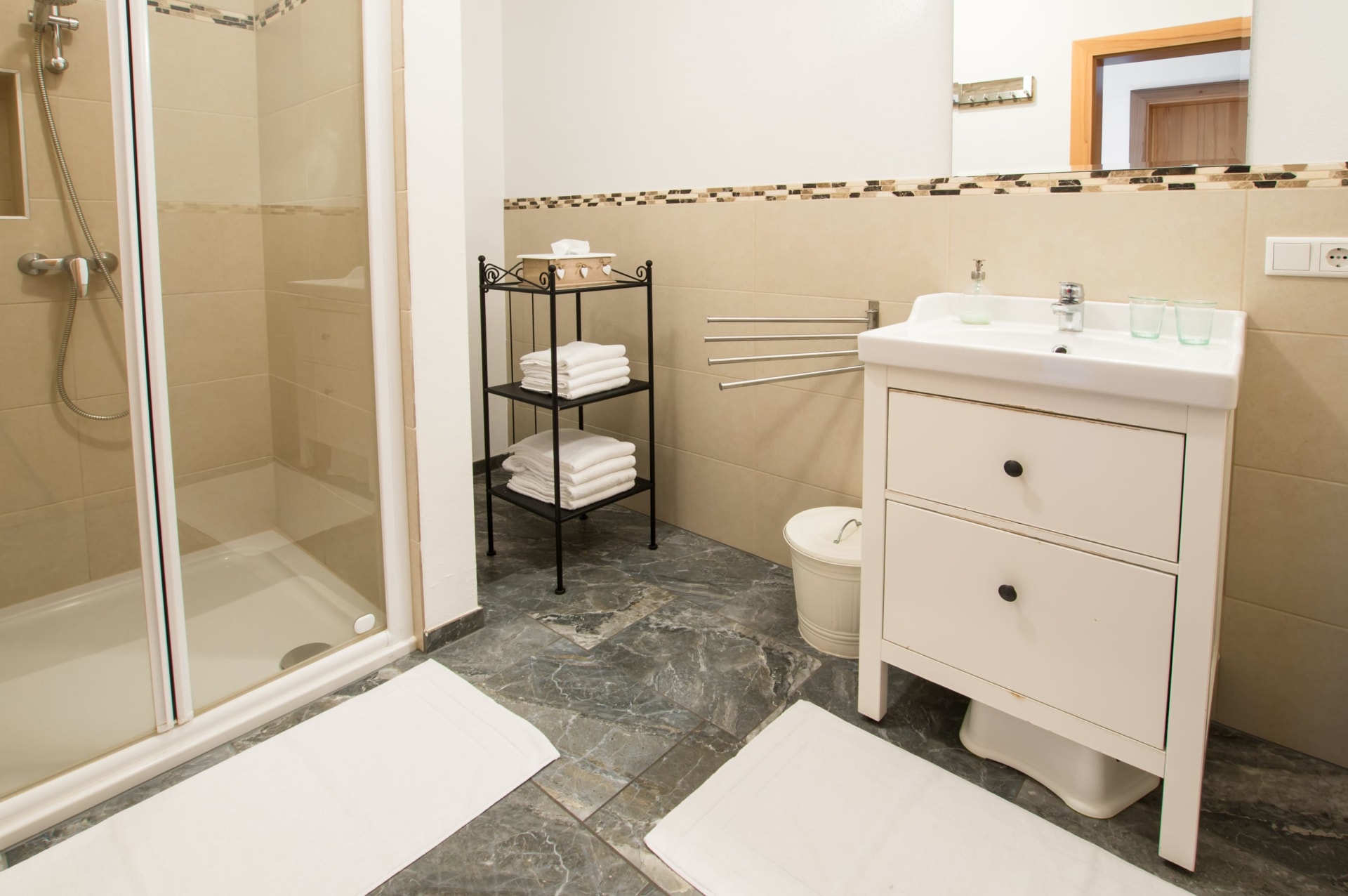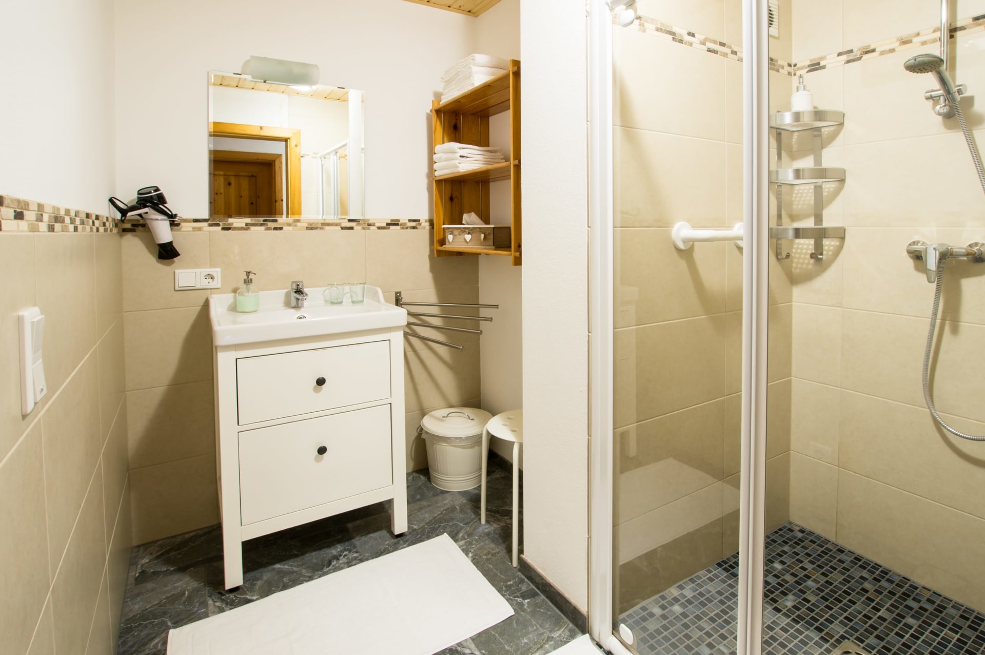 Die Küche ist in jeder Wohnung komplett ausgestattet - mit Geschirrspülmaschine! Bettwäsche, Hand- und Duschtücher, Sat-TV, Internetanschluss, kostenfreies W-Lan, Lift, ... ist vorhanden.