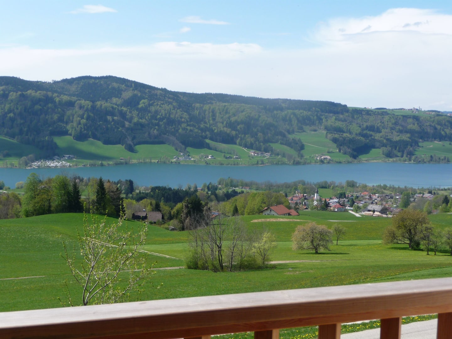 Willkommen am Familienferienhof Stabauer in sehr ruhiger Lage inmitten grüner Wiesen und Wälder mit schönem Ausblick auf den Irrsee und zu den Bergen rund um den Mondsee!