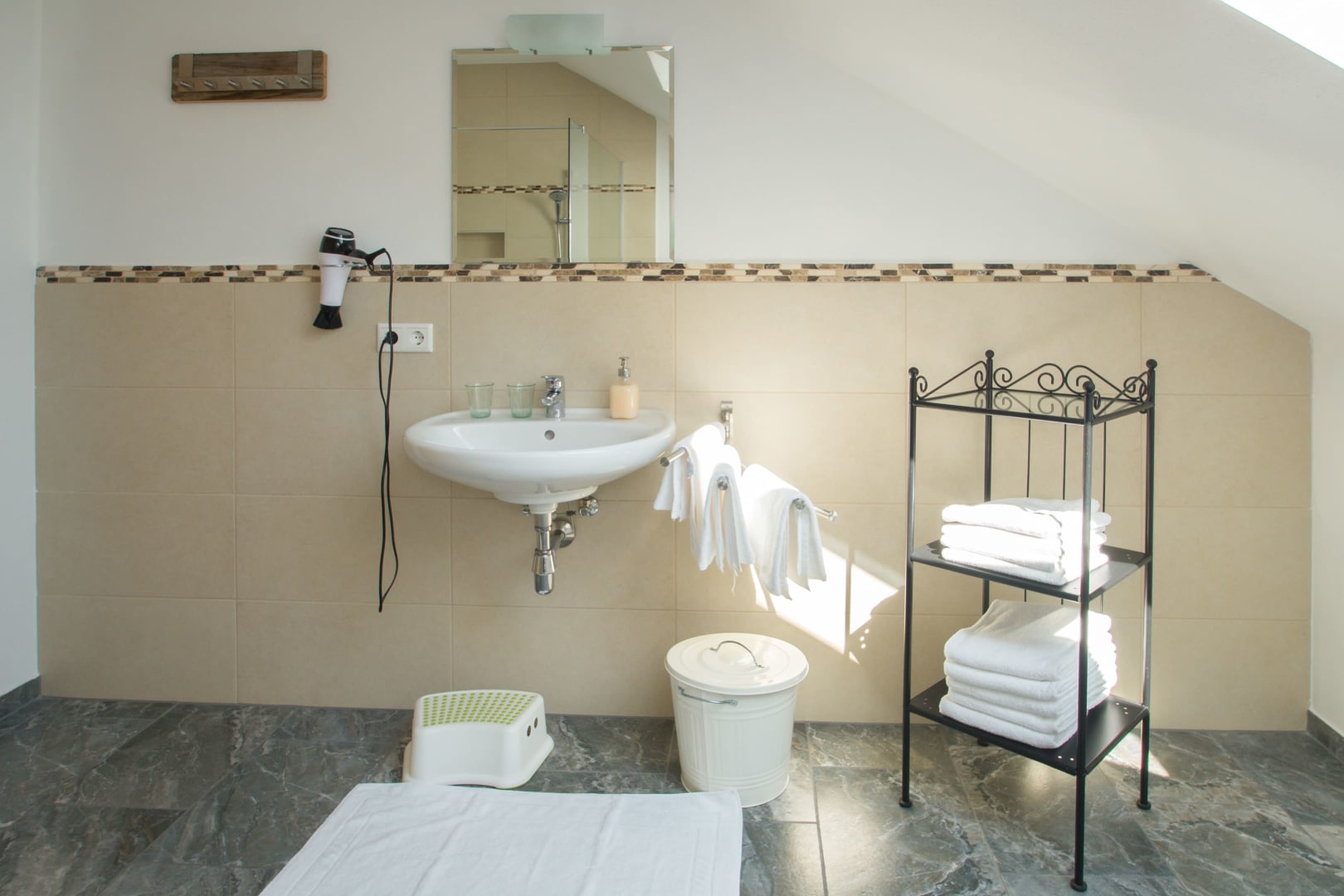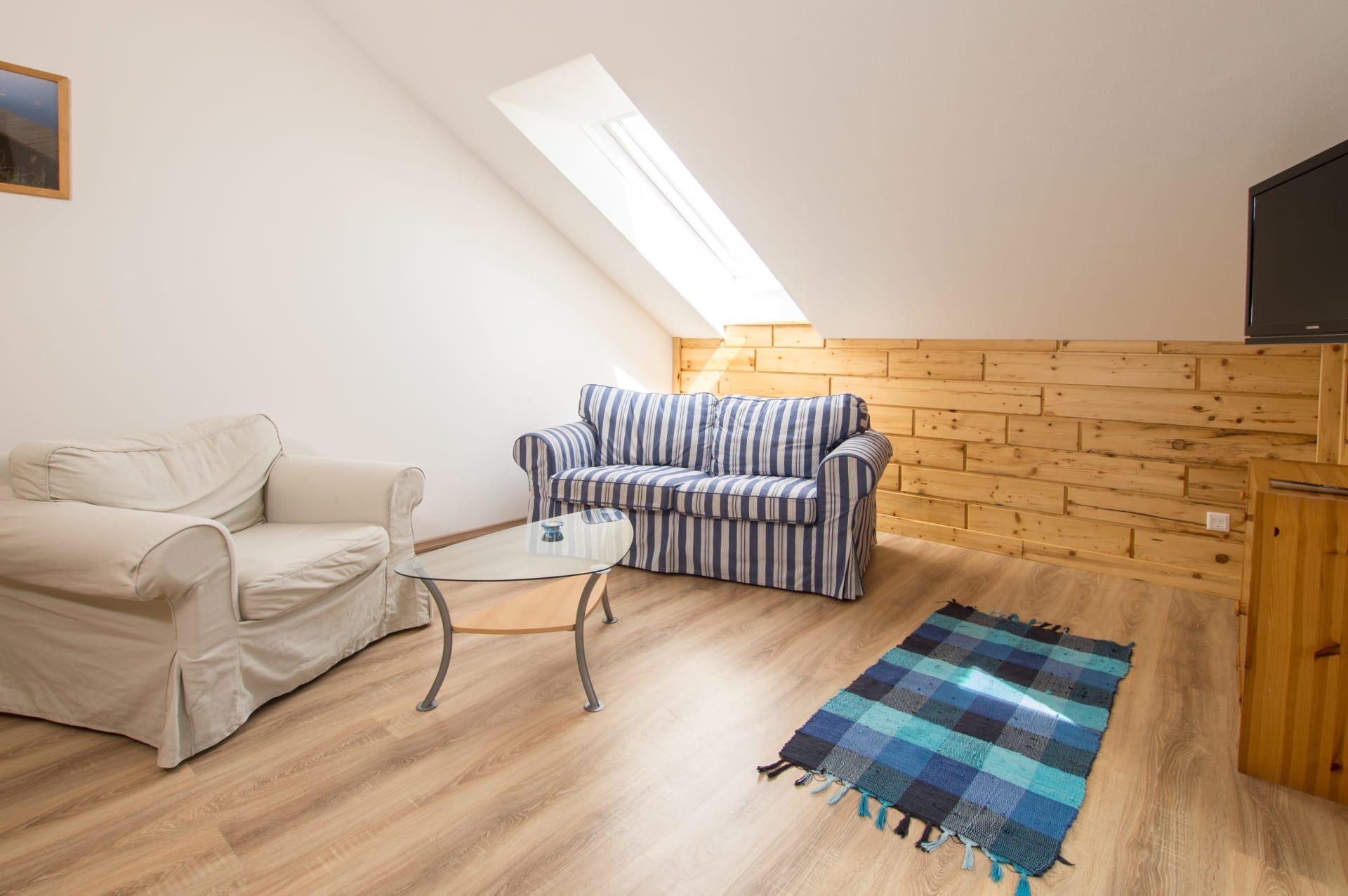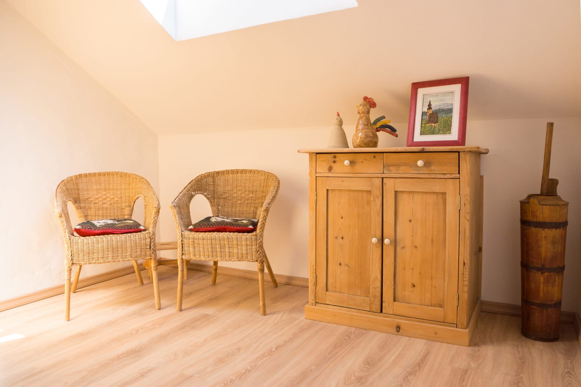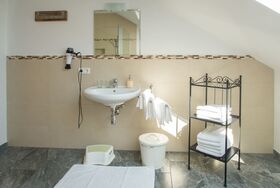Ferienwohnung mit barrierefreier Ausstattung! Hierbei handelt es sich um die Ferienwohnung Rosa Kolomandl. Diese Wohnung besteht aus Wohnküche, zwei Schlafzimmern, Bad mit WC und Terrasse. Die Terrasse ist uneinsehbar und von den Schlafzimmern aus hat man Seeblick.