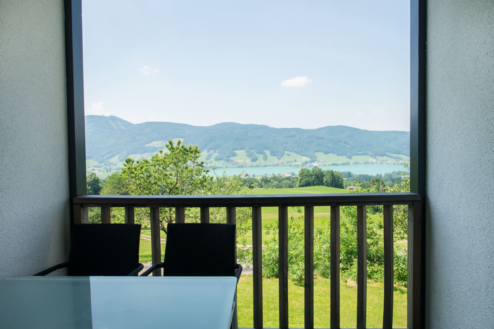 Willkommen am Familienferienhof Stabauer in sehr ruhiger Lage inmitten grüner Wiesen und Wälder mit schönem Ausblick auf den Irrsee und zu den Bergen rund um den Mondsee!