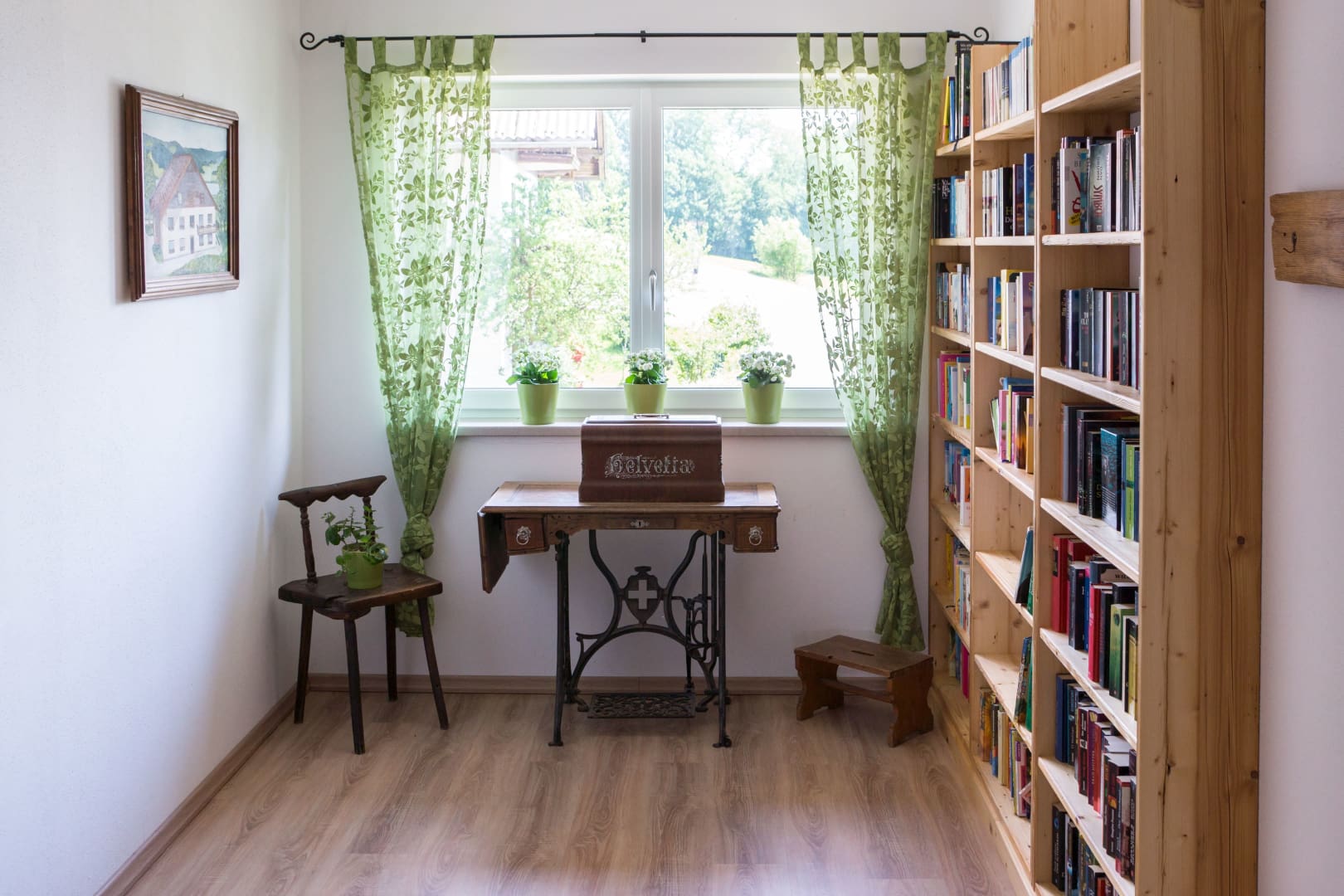 Die Ferienwohnung Grüne Kolomandl besteht aus Wohnküche, drei Schlafzimmern, Bad, WC und Terrasse mit Seeblick.
