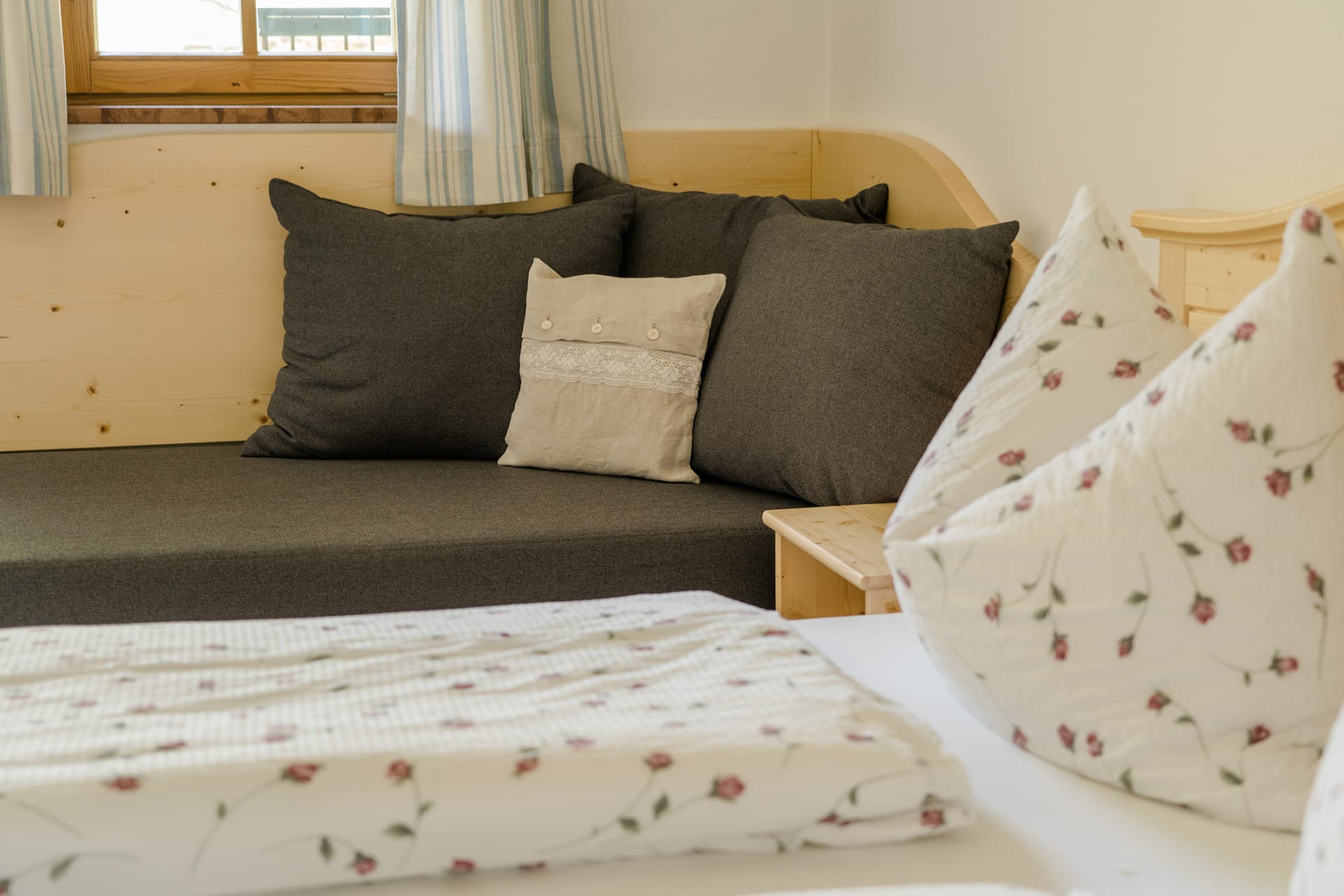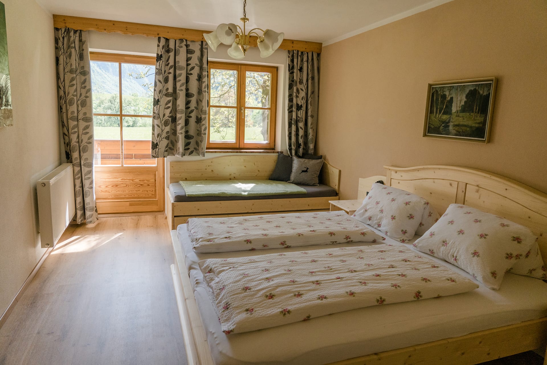 Unsere 3 Ferienwohnungen bieten gemütlichen Komfort mit viel Holz und traumhaftem Ausblick auf die Berge. Die Ferienwohnung Göllblick (1–4 Pers.) punktet mit Vollholzmöbeln und einer voll ausgestatteten Küche. In der Ferienwohnung Bluntaublick (1–6 Pers.) sorgt ein zusätzliches Schlafzimmer für viel Platz, ideal für Familien. Die Ferienwohnung Morgensonne (1–4 Pers.) begeistert mit zwei getrennten Schlafzimmern und hellem Ambiente. Alle Wohnungen verfügen über Küche, Dusche/WC, Bettwäsche, Handtücher und WLAN – perfekt zum Entspannen nach aktiven Urlaubstagen.