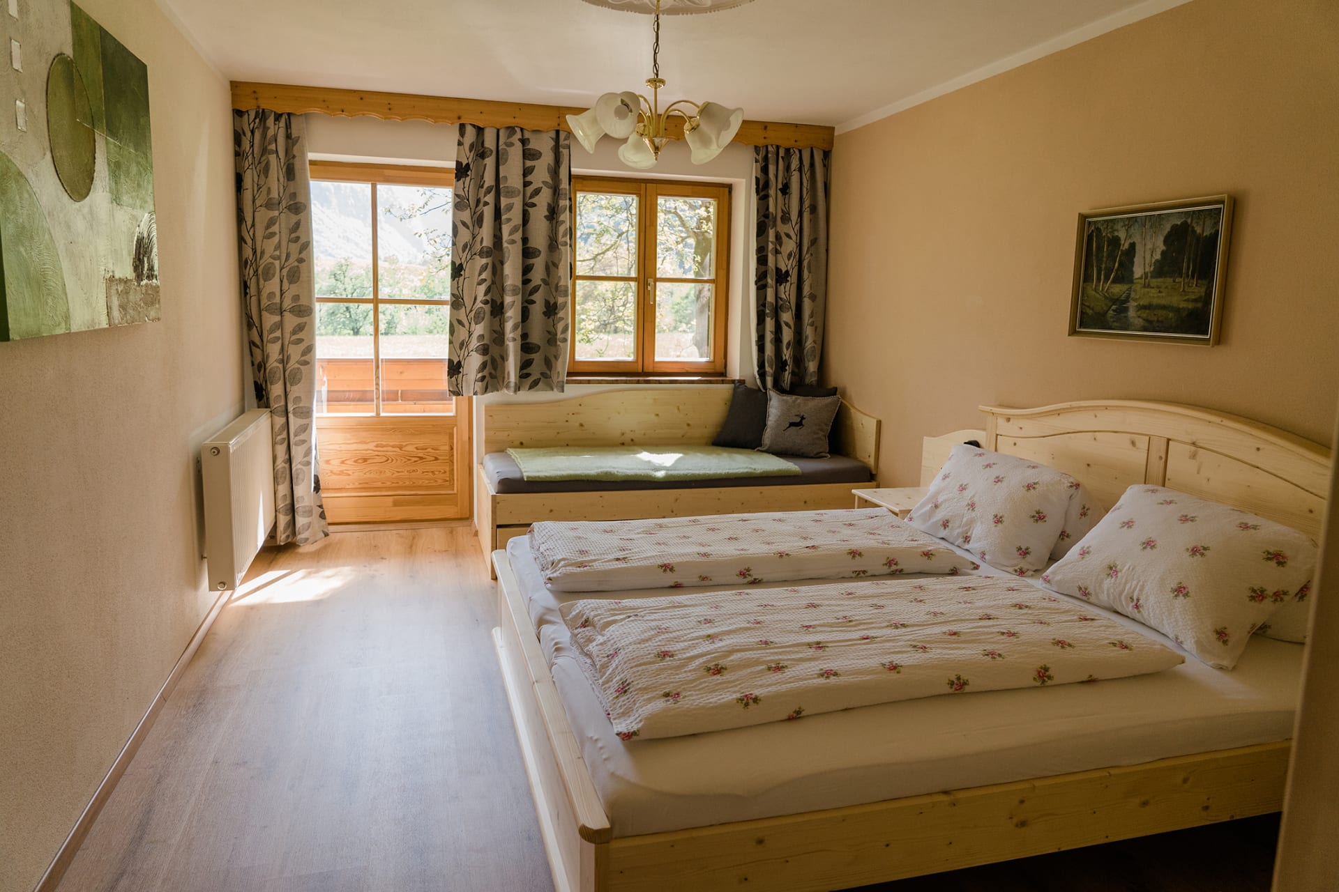 Unsere 3 Ferienwohnungen bieten gemütlichen Komfort mit viel Holz und traumhaftem Ausblick auf die Berge. Die Ferienwohnung Göllblick (1–4 Pers.) punktet mit Vollholzmöbeln und einer voll ausgestatteten Küche. In der Ferienwohnung Bluntaublick (1–6 Pers.) sorgt ein zusätzliches Schlafzimmer für viel Platz, ideal für Familien. Die Ferienwohnung Morgensonne (1–4 Pers.) begeistert mit zwei getrennten Schlafzimmern und hellem Ambiente. Alle Wohnungen verfügen über Küche, Dusche/WC, Bettwäsche, Handtücher und WLAN – perfekt zum Entspannen nach aktiven Urlaubstagen.