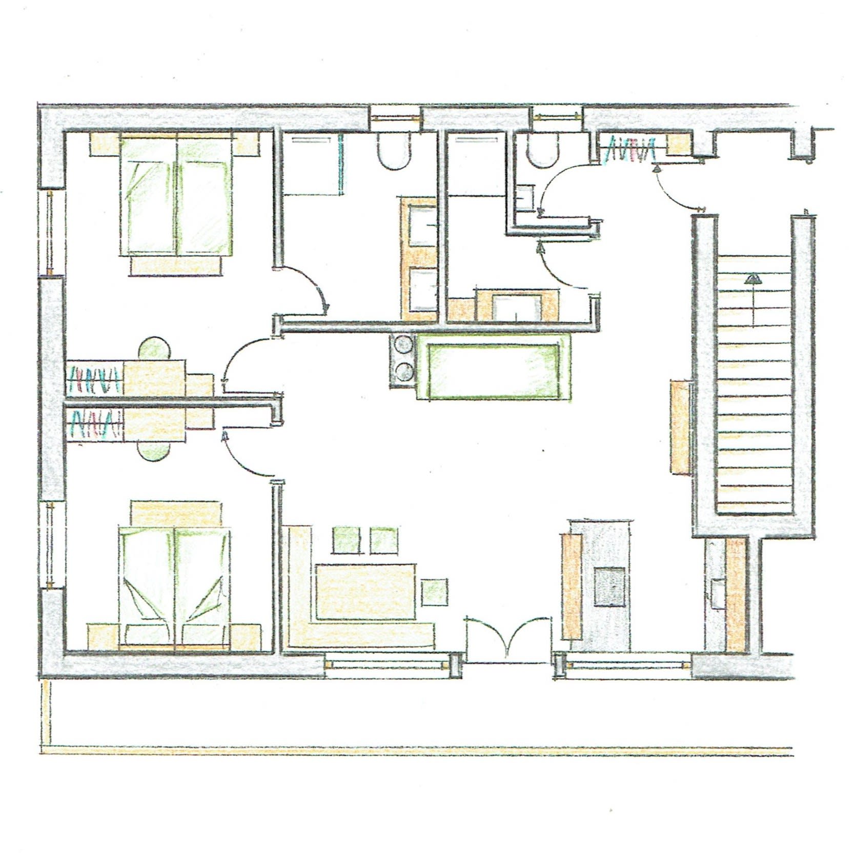 Anschließend erreicht man die beiden Schlafzimmer, wobei eines über ein eigenes Badezimmer verfügt – ideal für zusätzlichen Komfort und Privatsphäre.