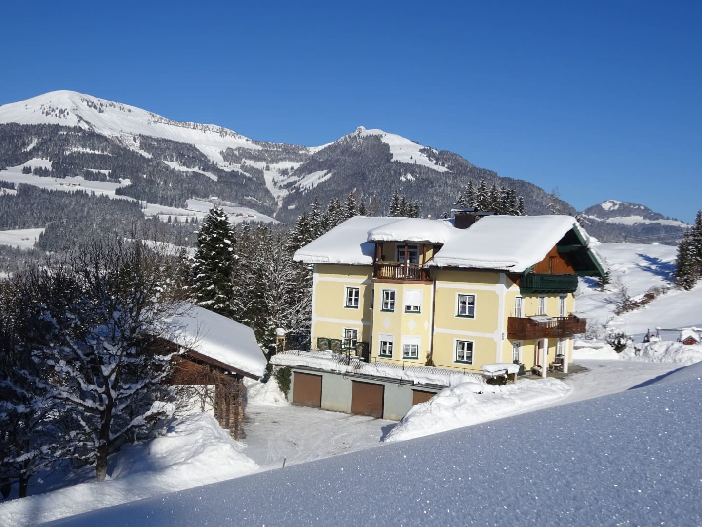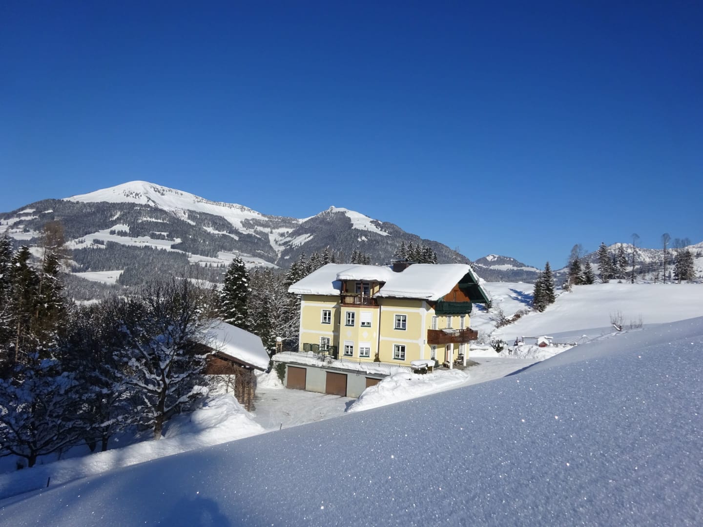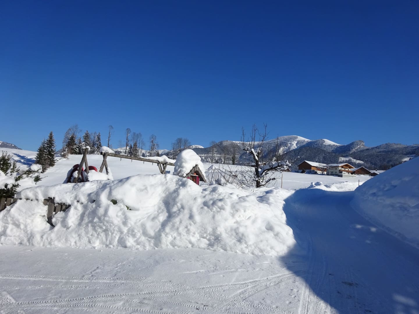 Im Winter geht es bei uns ruhiger, aber nicht weniger spannend zu. Die Wiesen rund um den Hof verwandeln sich in eine Winterspielwiese – perfekt für Rodeln, Schneemann bauen oder Schlittenfahrten. Nur 1 km entfernt findest du eine gespurte Langlaufloipe auf einem Hochplateau, mit herrlichem Blick auf das Salzachtal und das Tennengebirge. Für Skilanglauf, Winterwandern oder einfach die frische Bergluft genießen ist St. Koloman ideal. Skifahrer erreichen in ca. 30 Autominuten bekannte Salzburger Skigebiete wie Dachstein-West, Abtenau, Werfenweng, Flachau, Hochkönig oder Eben im Pongau. Auch Skitouren auf den Trattberg oder umliegende Gipfel sind möglich – bei meist geringer Lawinengefahr.