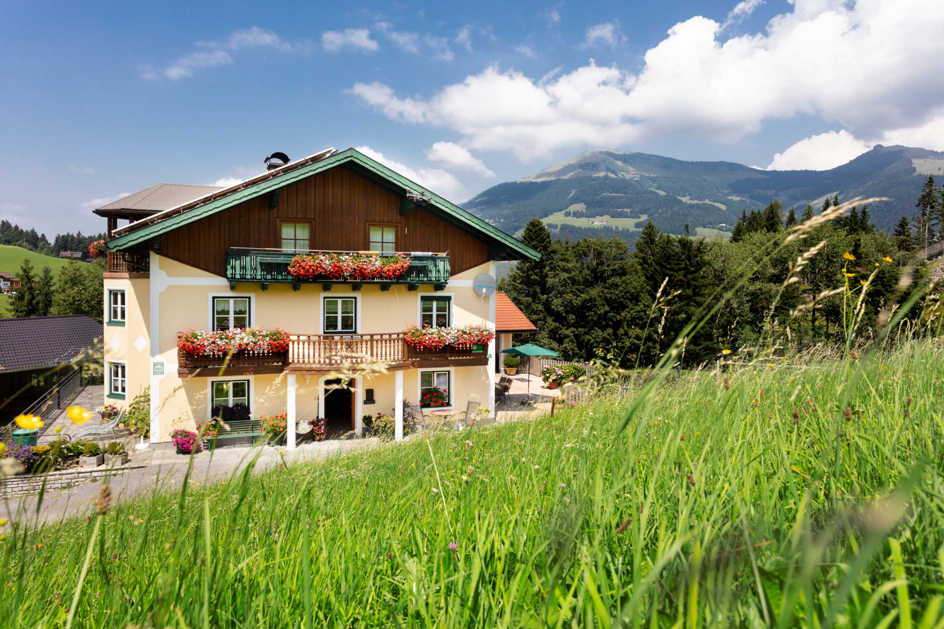 Im Sommer bist du bei uns in St. Koloman mitten im Wanderparadies. Direkt ab dem HausLehen kannst du zu zahlreichen Wanderungen, Radtouren oder Nordic-Walking-Strecken aufbrechen. Beliebte Ziele sind der Trattberg, der Regenspitz oder der Schmittenstein – mit traumhafter Aussicht über das Salzburger Land. Nach einem aktiven Tag lädt unser Garten mit Schwimmbad, Liegen, Grillplatz und Lagerfeuer zum Entspannen ein. Wer mehr Erholung sucht, findet sie in den Thermen Aqua Salza in Golling oder der Kur-Therme Bad Vigaun – beide nur wenige Kilometer entfernt.