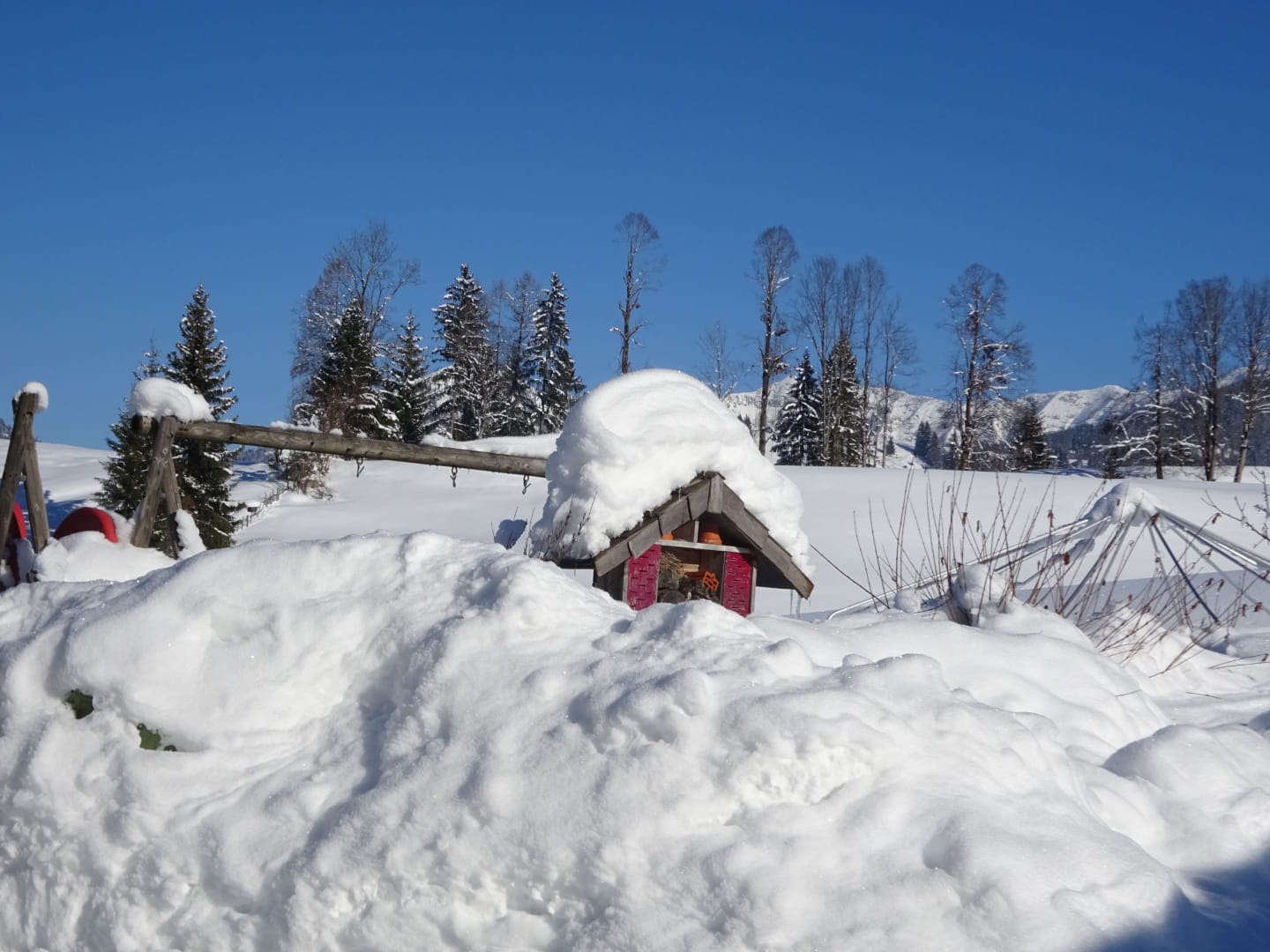 Für Kinder ist unser Bauernhof ein echtes Erlebnis: Sie dürfen bei der Fütterung zusehen, mit unseren Tieren auf Tuchfühlung gehen oder mit dem Schlitten über die Wiesen flitzen. Im Sommer lädt unser Garten mit Schwimmbad (Mai bis September) zum Baden ein. Sonnenliegen, schattige Plätzchen, Grillstelle und Lagerfeuer machen deinen Aufenthalt besonders gemütlich.