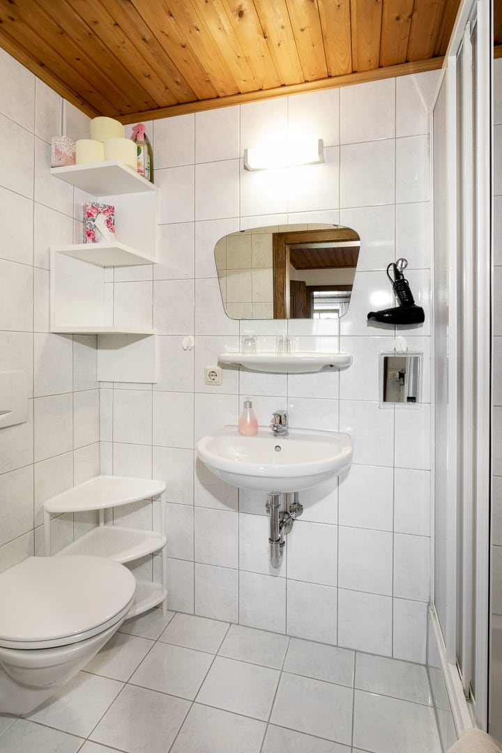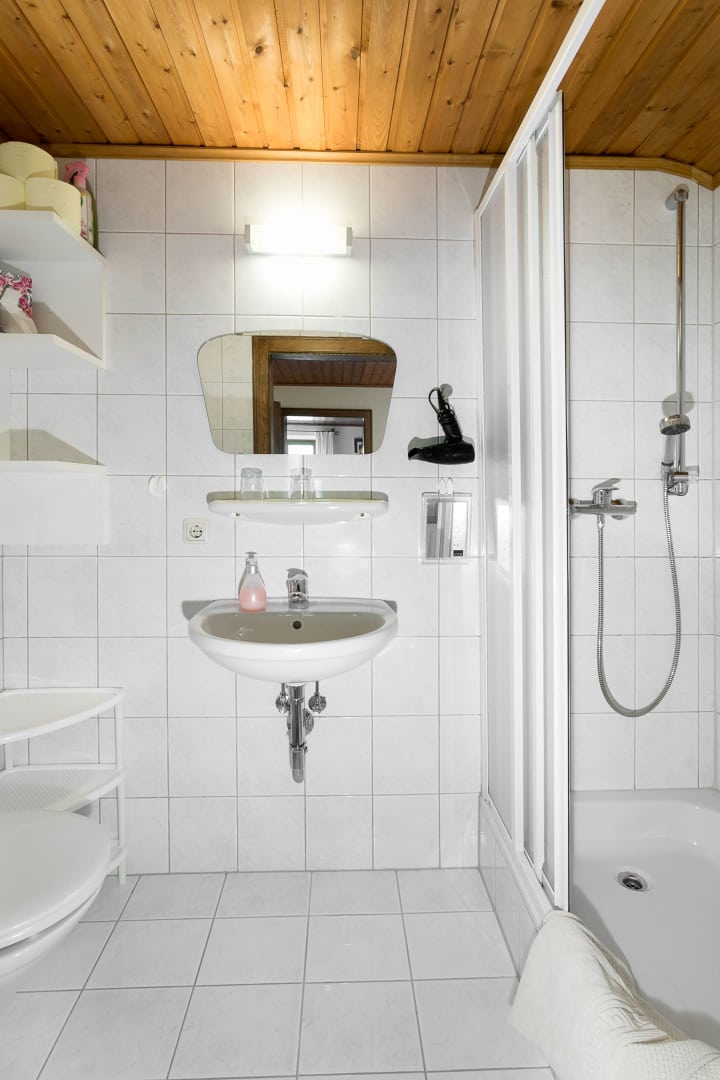 Jedes Schlafzimmer ist mit einen Sat-TV mit ORF-Karte und Radiowecker mit CD-Player und jedes Bad mit Fön und Kosmetikspiegel ausgestattet.