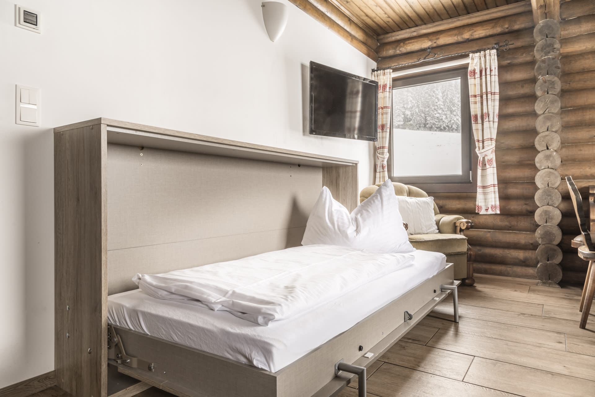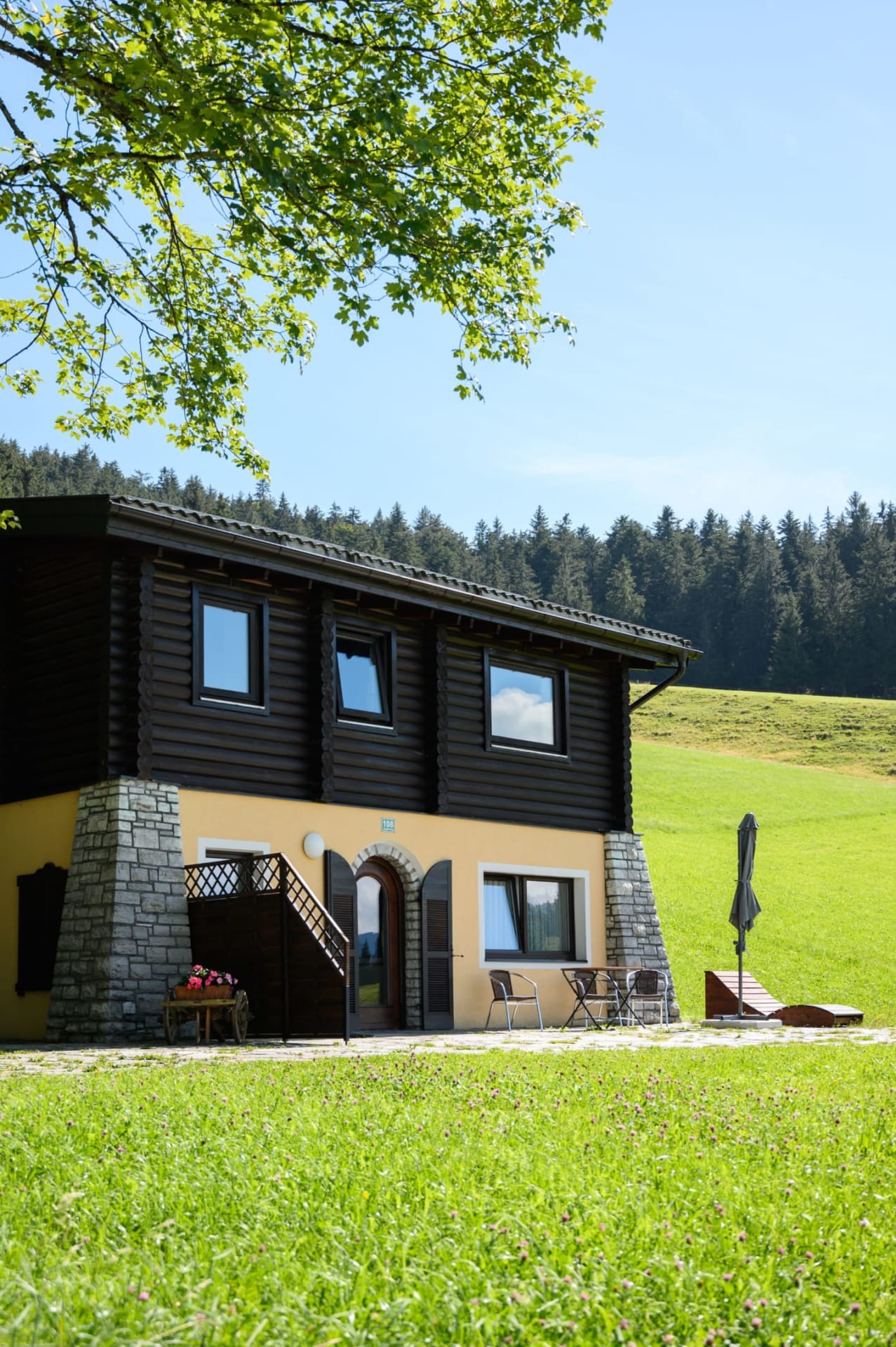 Das Ferienhaus befindet sich rund 200 m vom Bauernhof entfernt und bietet 2 gemütliche Appartements, jeweils für bis zu 4 Personen. Die Wohnungen sind im alpinen Stil eingerichtet und verfügen über großzügige Terrassen – ideal zum Entspannen und Sonne tanken, selbst im Winter.