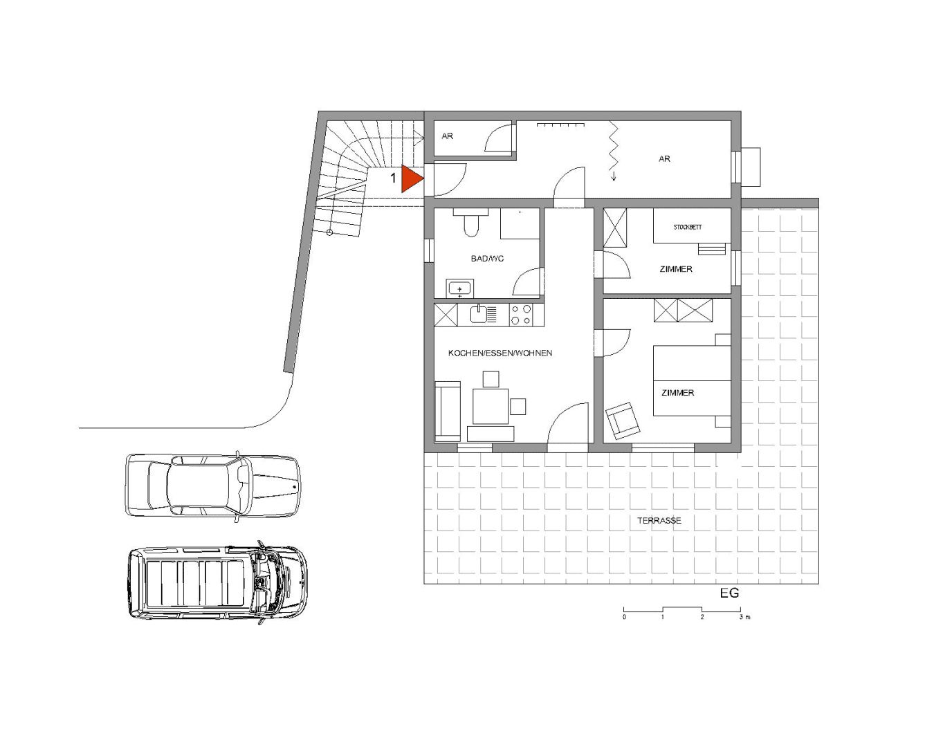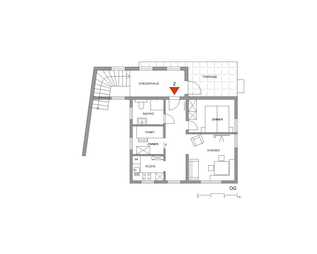 Auf rund 50 m² findest du genug Platz zum Ausspannen, Genießen und Zusammensein. Die Wohnung ist ideal für Paare, Familien oder kleine Gruppen von bis zu 5 Personen. Du schläfst in einem Kingsize-Bett, einem Etagenbett sowie einem praktischen Schrankbett – perfekt für erholsame Nächte.