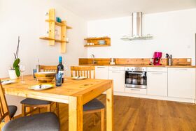 Die liebevoll eingerichteten Wohnungen am Seidenwebergut bieten jeweils ein großes Wohnzimmer und Essbereich, ein Schlafzimmer, Dusche/WC sowie eine voll ausgestattete Küche.