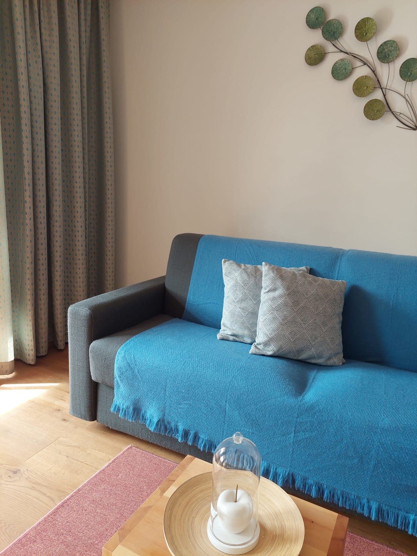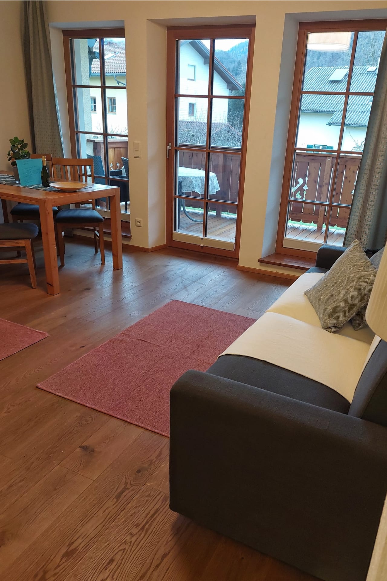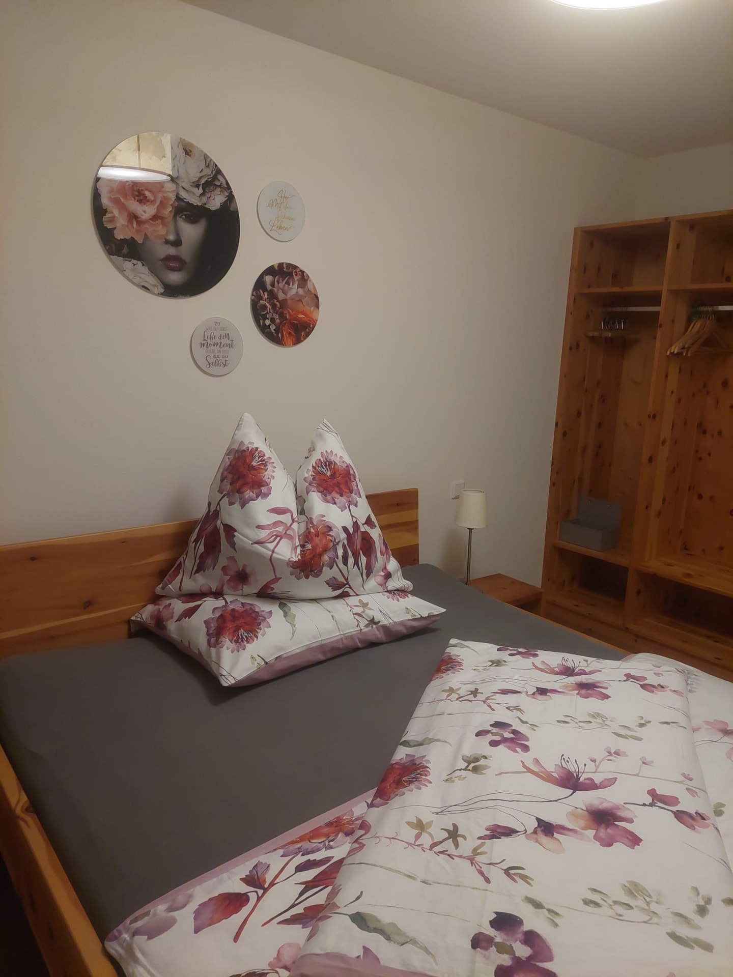 Die individuell eingerichtete Ferienwohnung bietet eine vollausgestattete Küche, einen Wohn-/Essbereich mit bequemer, italienischer Schlafcouch und ein Schlafzimmer mit Zirbenholzmöbeln.