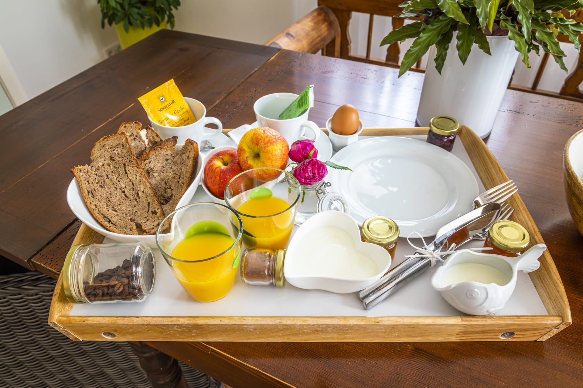 Auf Wunsch bieten wir auch Frühstücksservice. Das Frühstück mit regionalen und selbstgemachten Produkten wird ins Appartement serviert (Preis pro Person und Tag € 22)