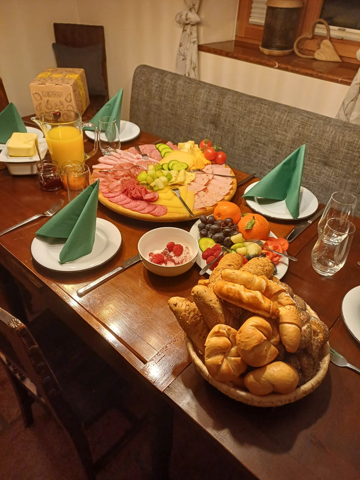 Auf Wunsch bieten wir auch Frühstücksservice. Das Frühstück mit regionalen und selbstgemachten Produkten wird ins Appartement serviert (Preis pro Person und Tag € 22)