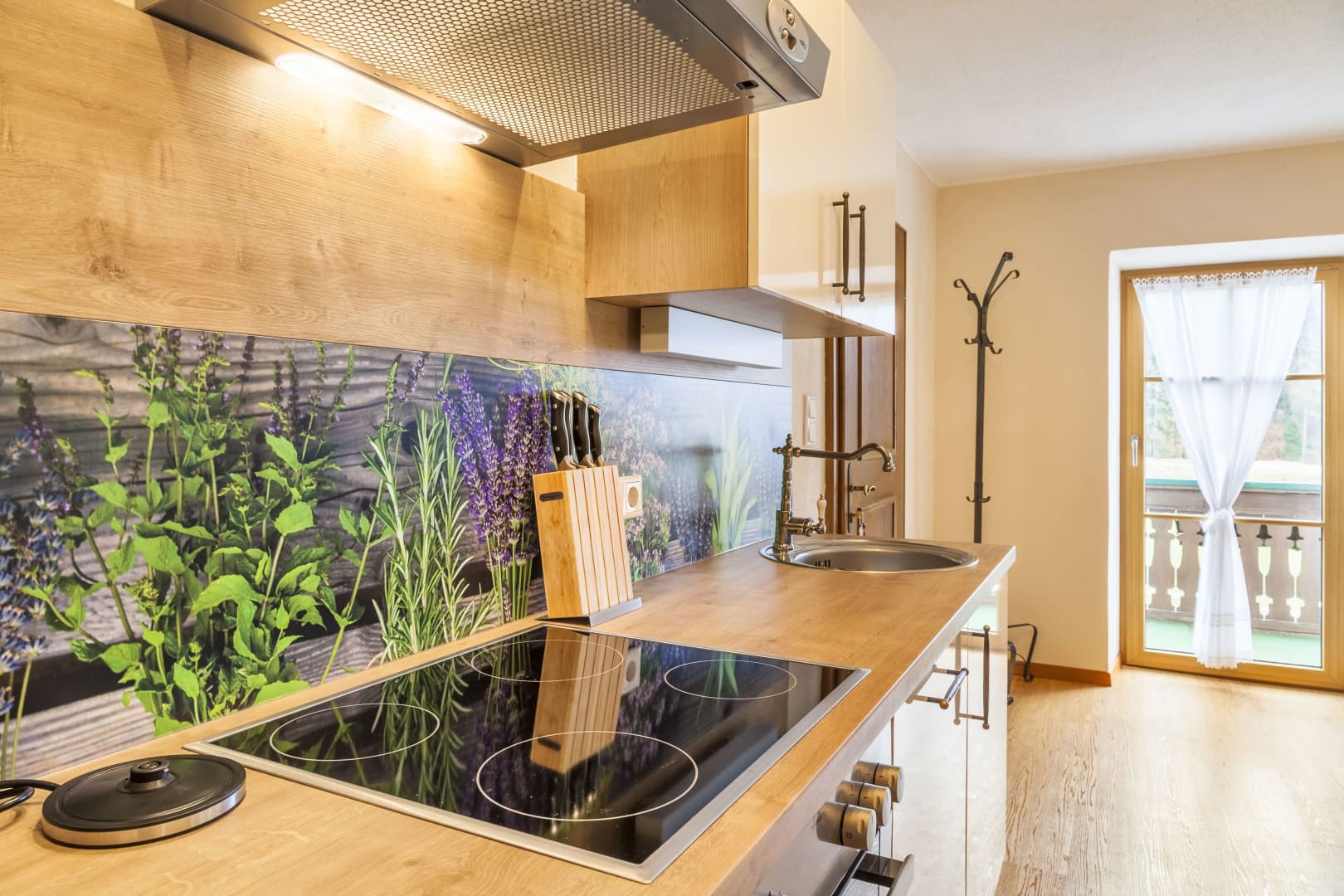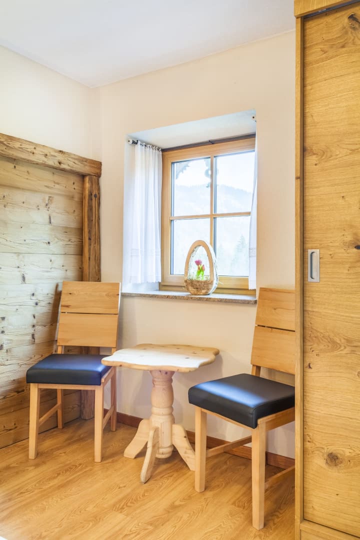 Die Ferienwohnung mit Blick auf unseren Hausberg, den Ellmaustein, liegt im 1. Stock des Zuhauses, gleich neben dem Bauernhaus und bietet Platz für 2 bis 5 Personen.