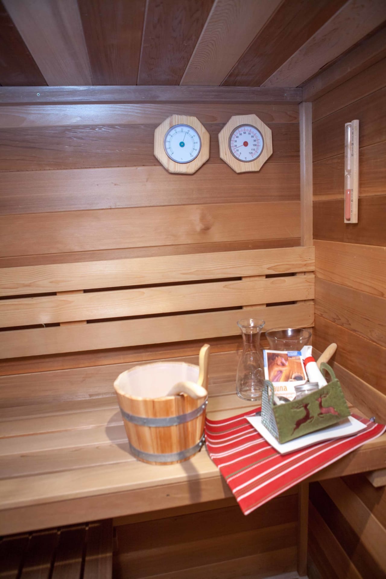Nach einem ausgedehnten Winterspaziergang können Sie sich in unserer urigen Sauna entspannen. (Für die Sauna entfällt eine Gebühr von € 19,- pro Person.)