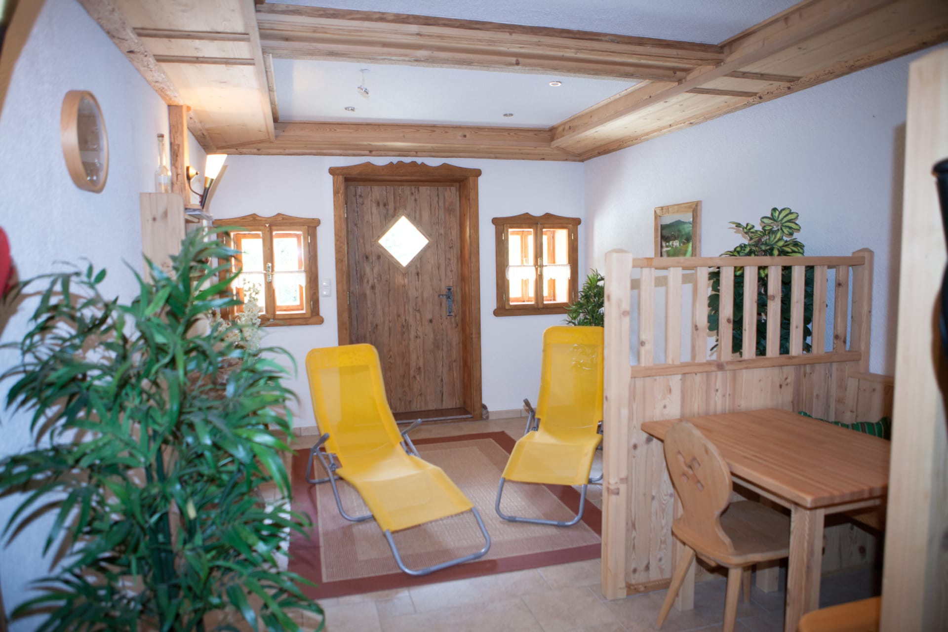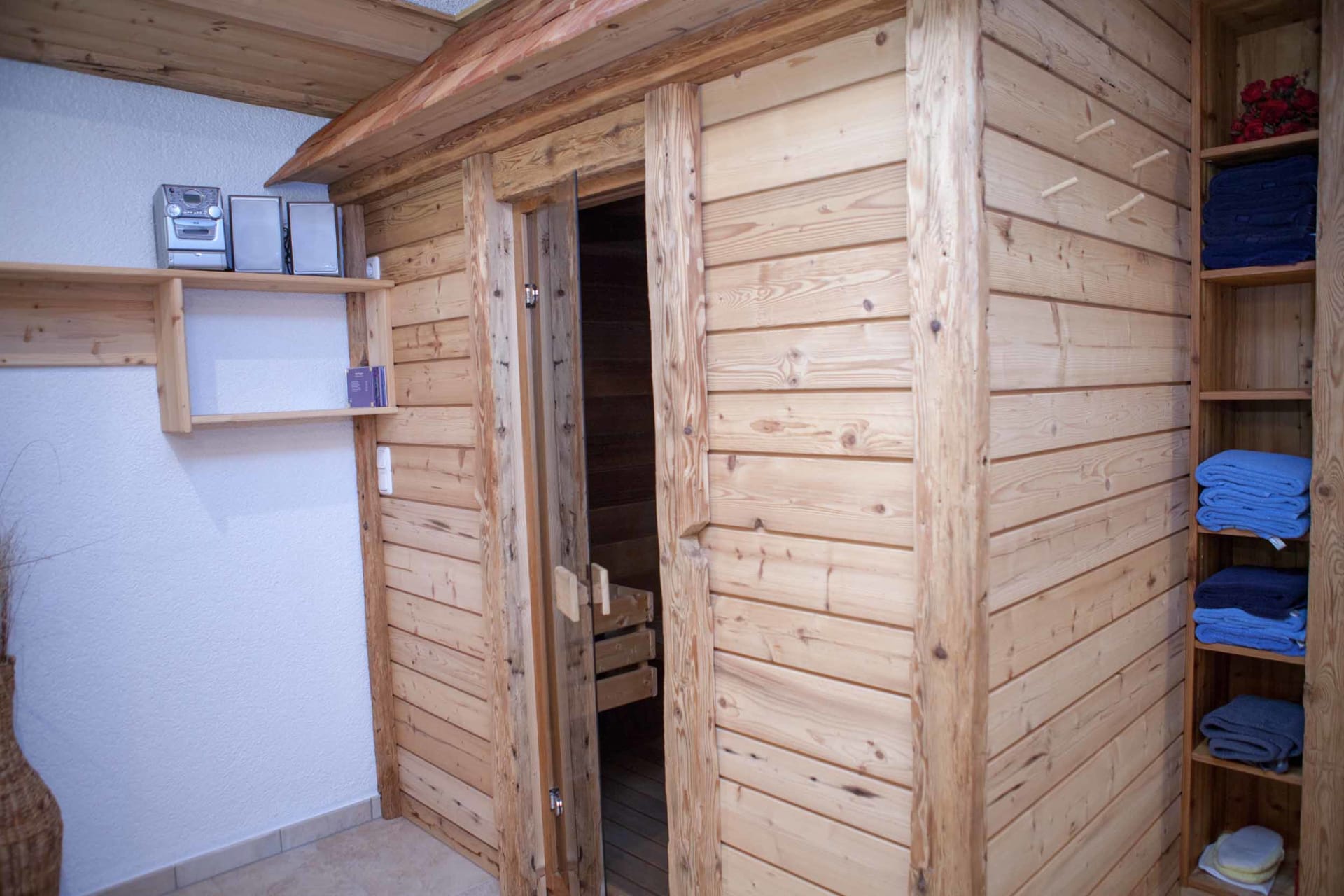 Nach einem ausgedehnten Winterspaziergang können Sie sich in unserer urigen Sauna entspannen. (Für die Sauna entfällt eine Gebühr von € 19,- pro Person.)