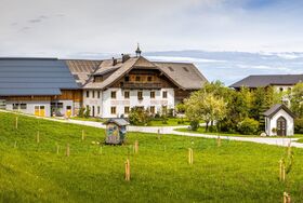Unser Bio-Heumilchbauernhof liegt sonnig und zentral in Hof bei Salzburg, mitten in der wunderschönen Fuschlseeregion im Salzburger Land. Der Ortskern mit Geschäften und Gasthäusern ist bequem zu Fuß erreichbar – ideal für alle, die Erholung und Erlebnis suchen.