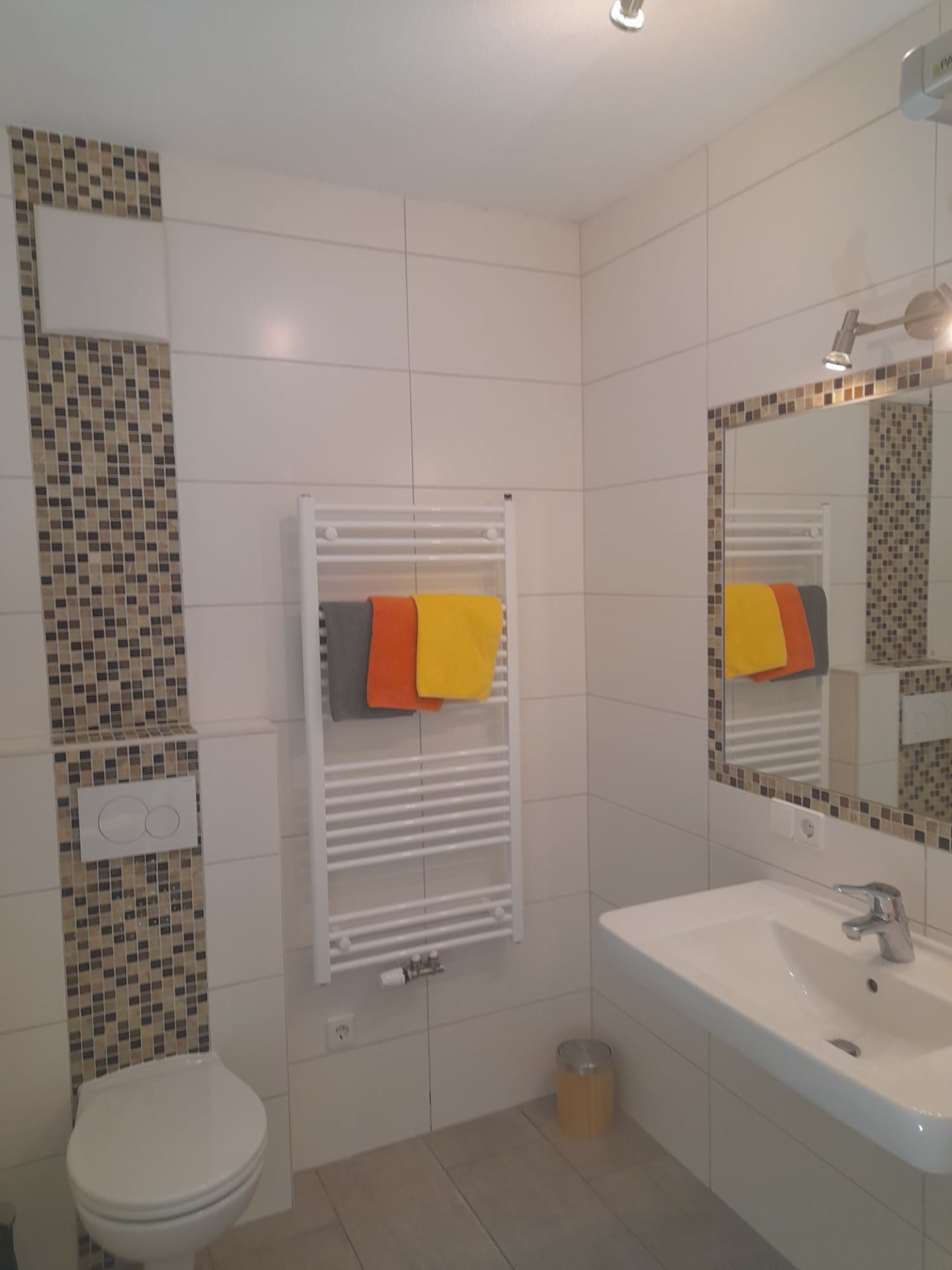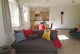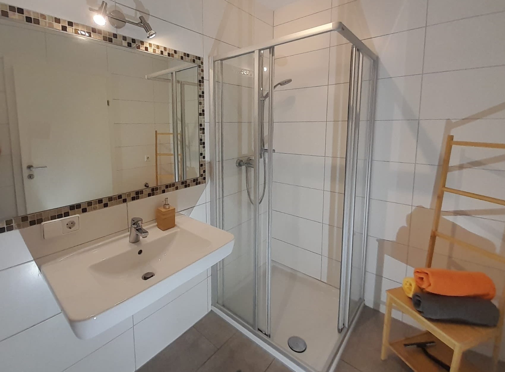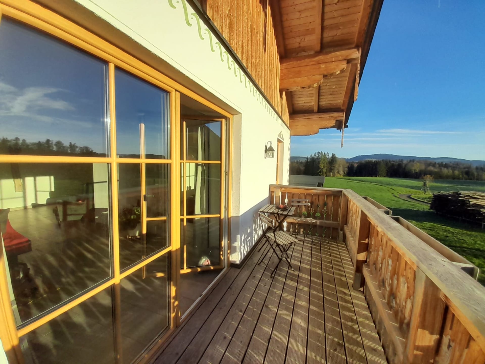 Die Ferienwohnung ist ca. 55 m² groß und bietet Platz für bis zu 3 Personen. Es gibt ein Schlafzimmer mit Doppelbett, eine Kochnische und einen großen Wohnbereich mit Ausziehcouch, sowie ein Badezimmer mit Dusche und WC. Vom Balkon hat man einen schönen Ausblick auf den Garten und die Berge. Die Wohnung befindet sich im 1. Stock des Nebengebäudes. Sat-TV und WLAN vorhanden.