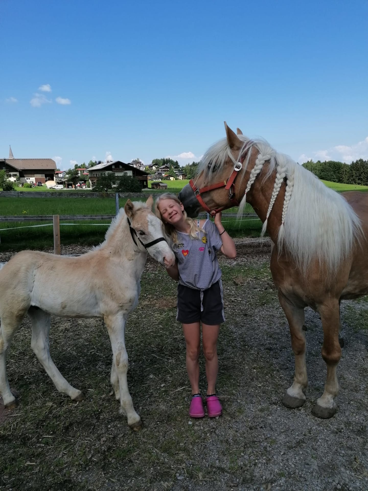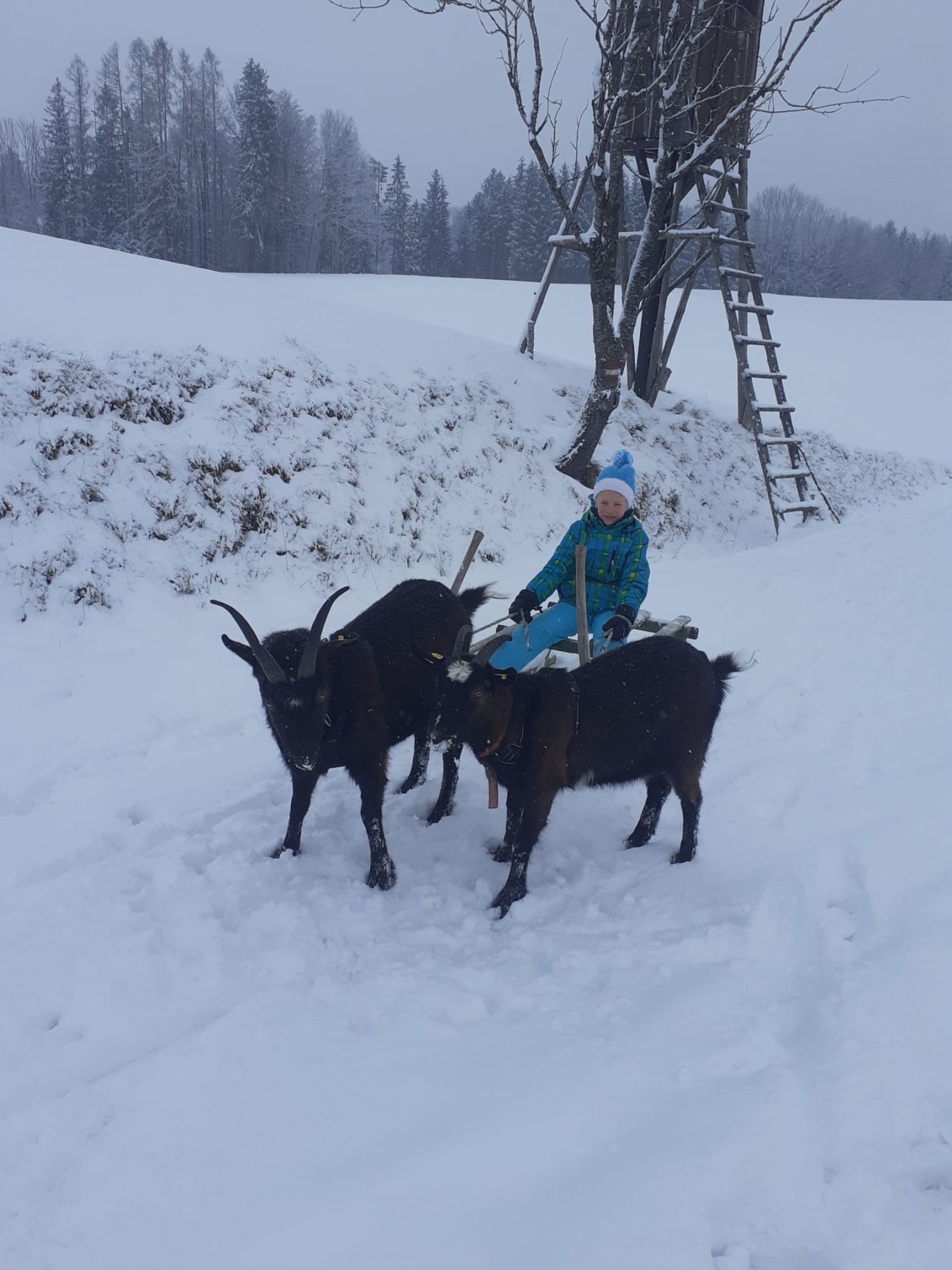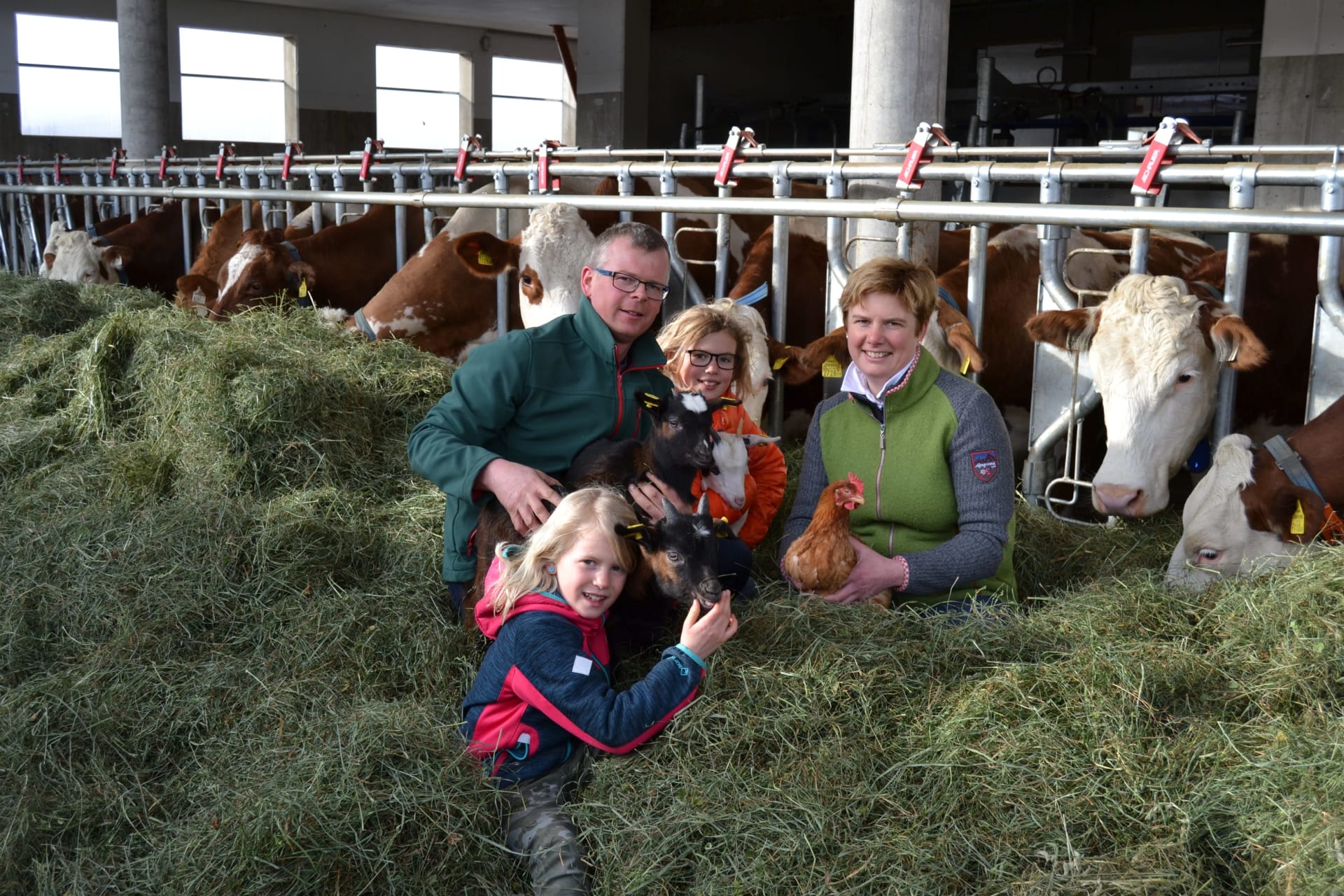 Wir führen unseren Hof als zertifizierten Bio-Heumilchbetrieb. Unsere Kühe leben im Laufstall, den du gerne besuchen darfst. Außerdem freuen sich Ziegen, Hühner, Hasen, Pferde und Katzen auf Streicheleinheiten. Beim Melken, Füttern und Versorgen kannst du aktiv mithelfen – ein echtes Bauernhoferlebnis!
