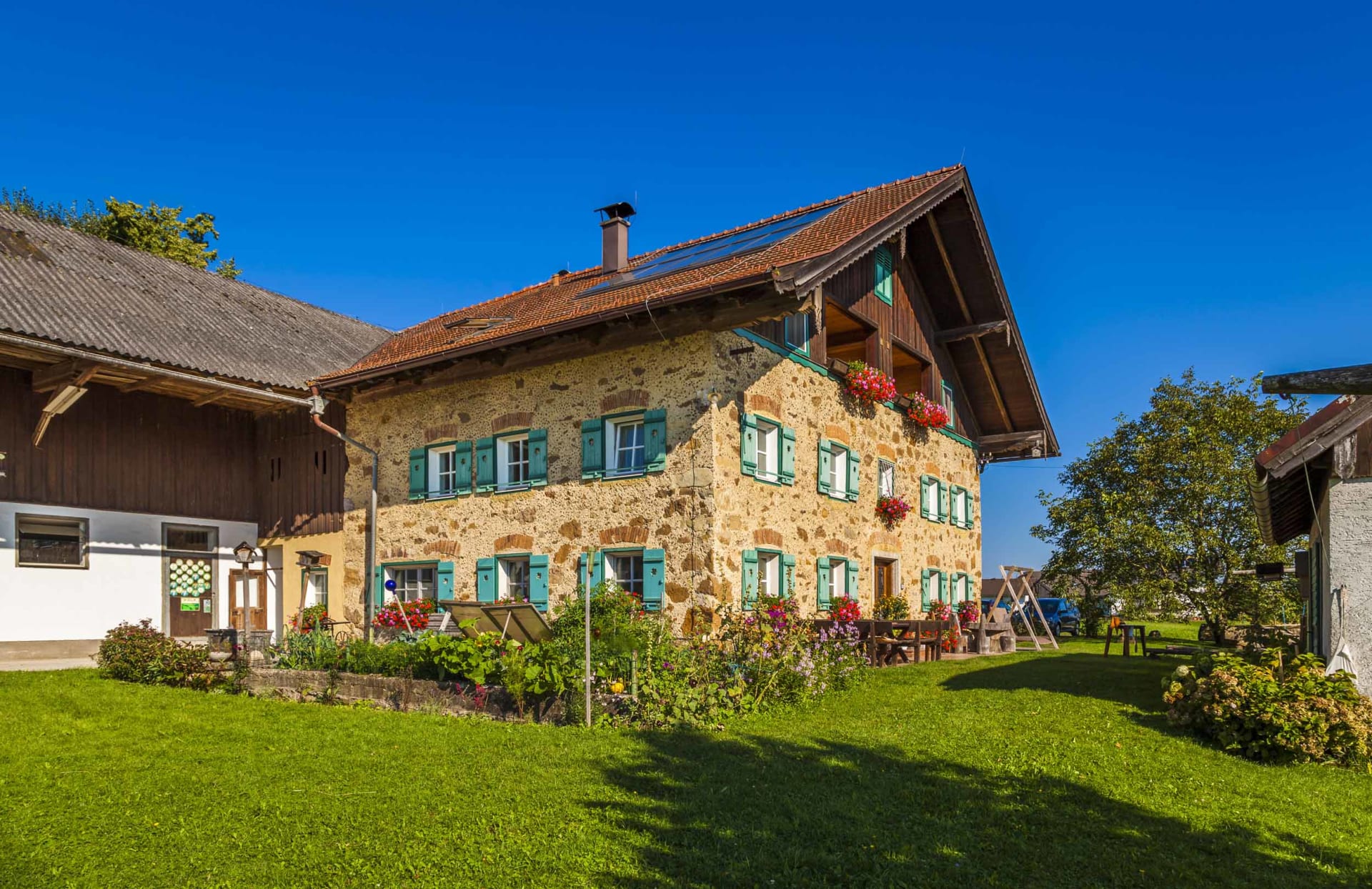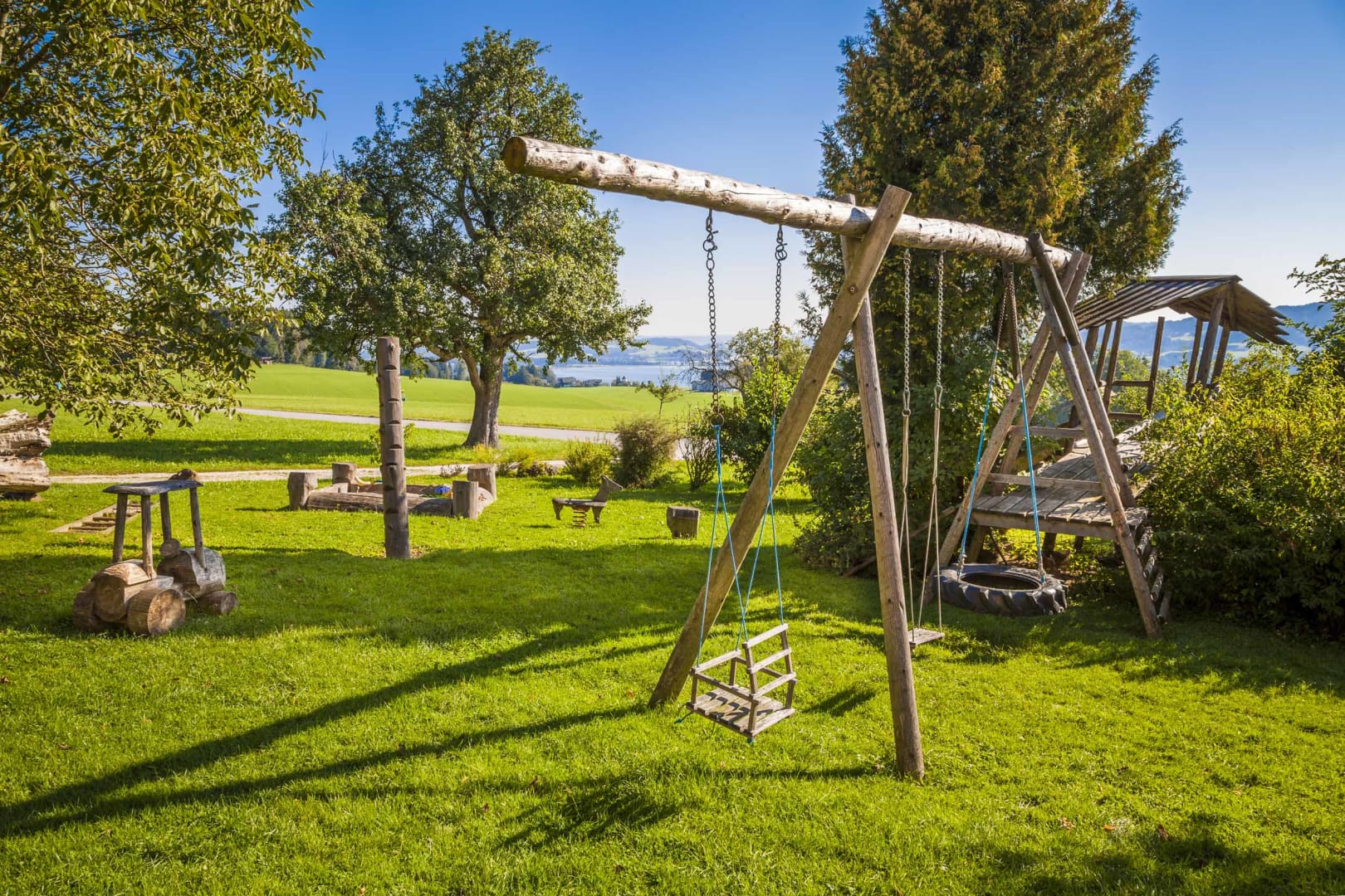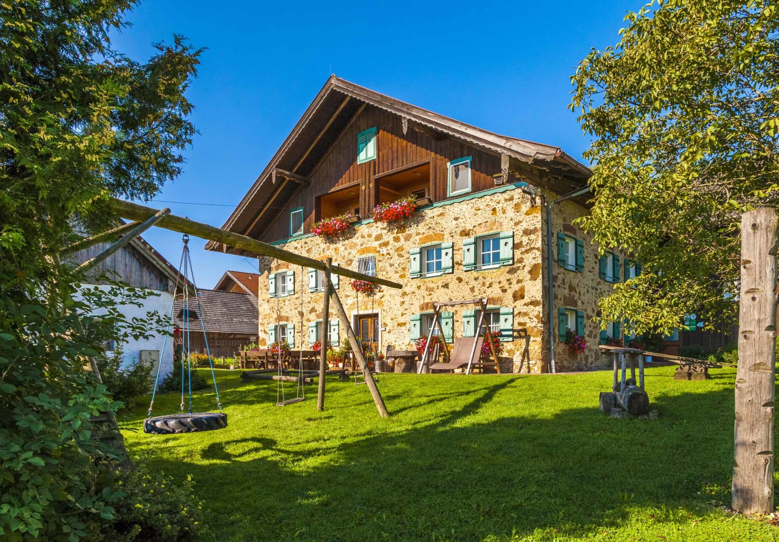 Für Abenteuerlustige wartet der Hochseilpark Seeham mit Kletterparcours in den Baumkronen. Wander- und Radwege starten direkt beim Hof, und bei warmem Wetter kannst du mit den Kindern auf dem Spielplatz toben oder die Tiere füttern.