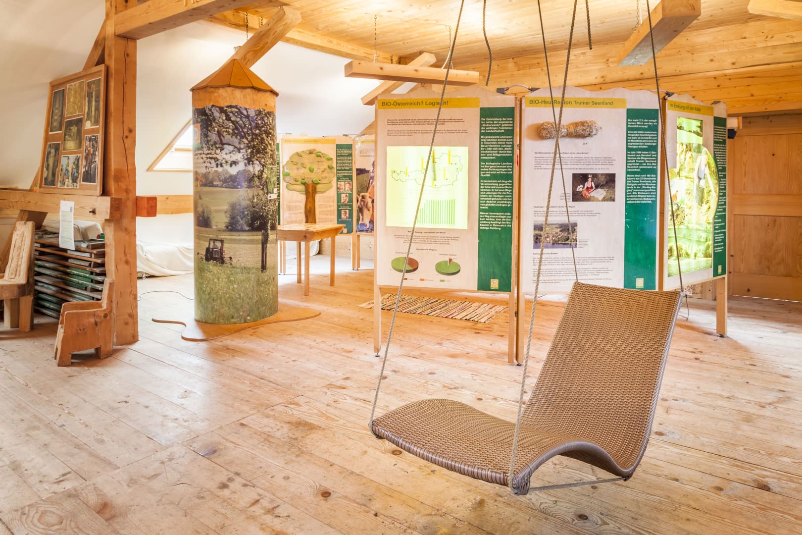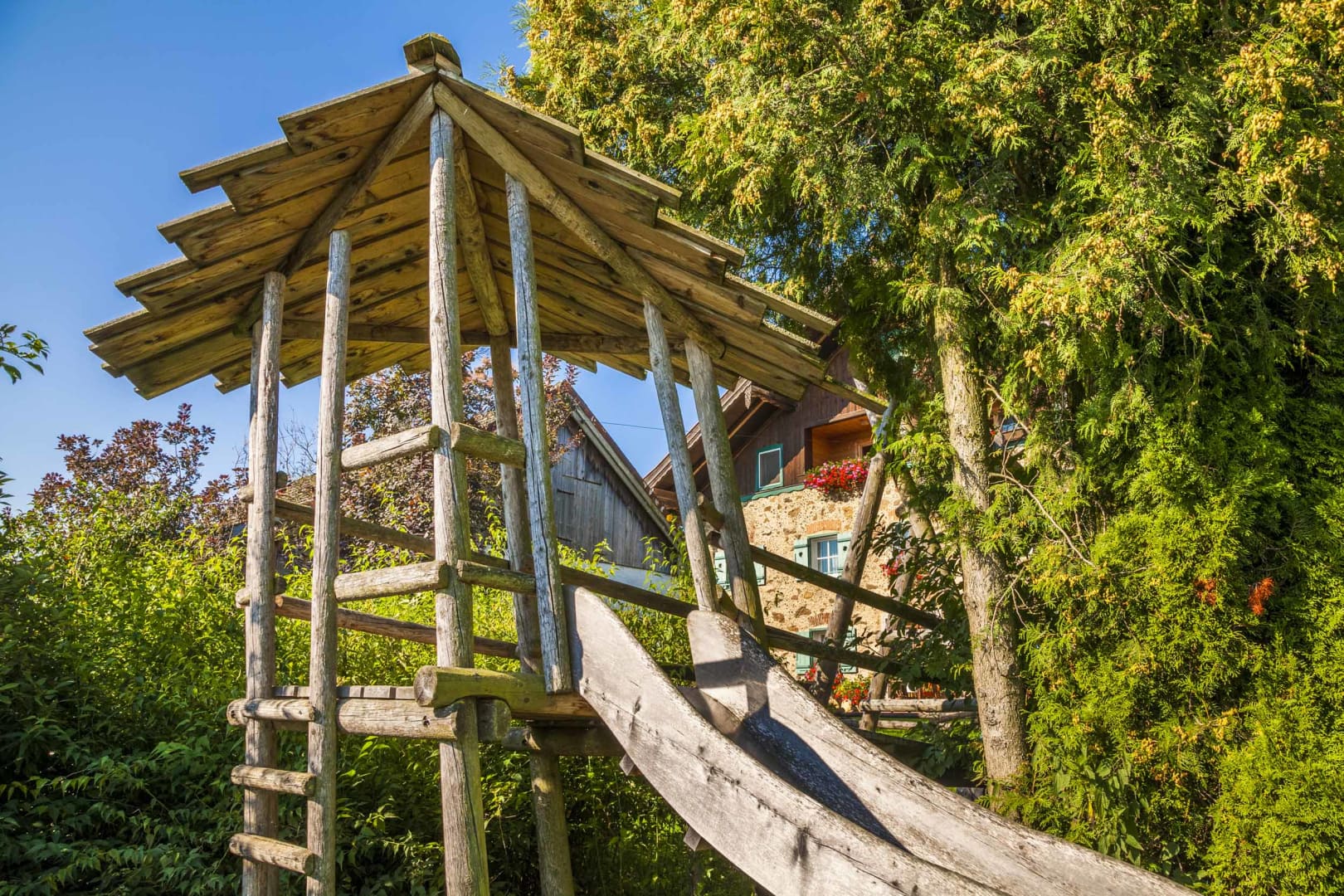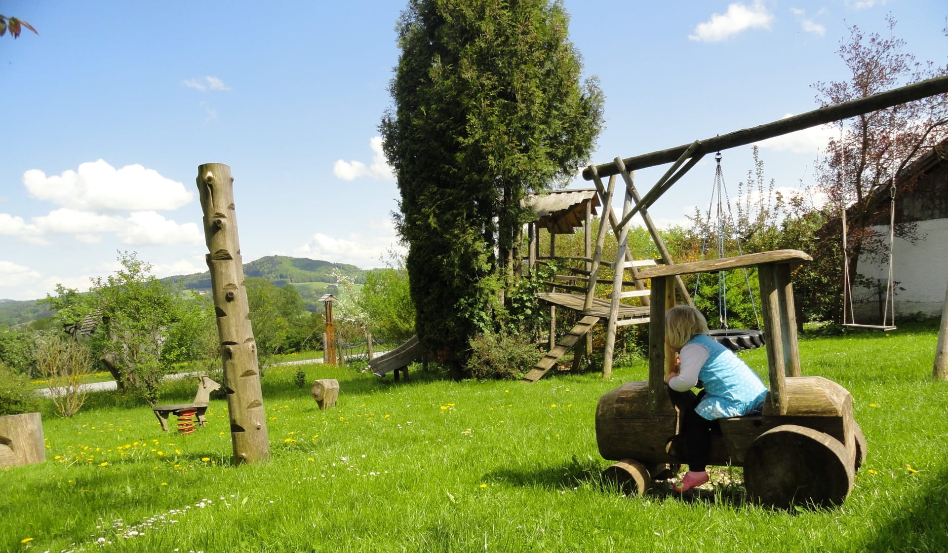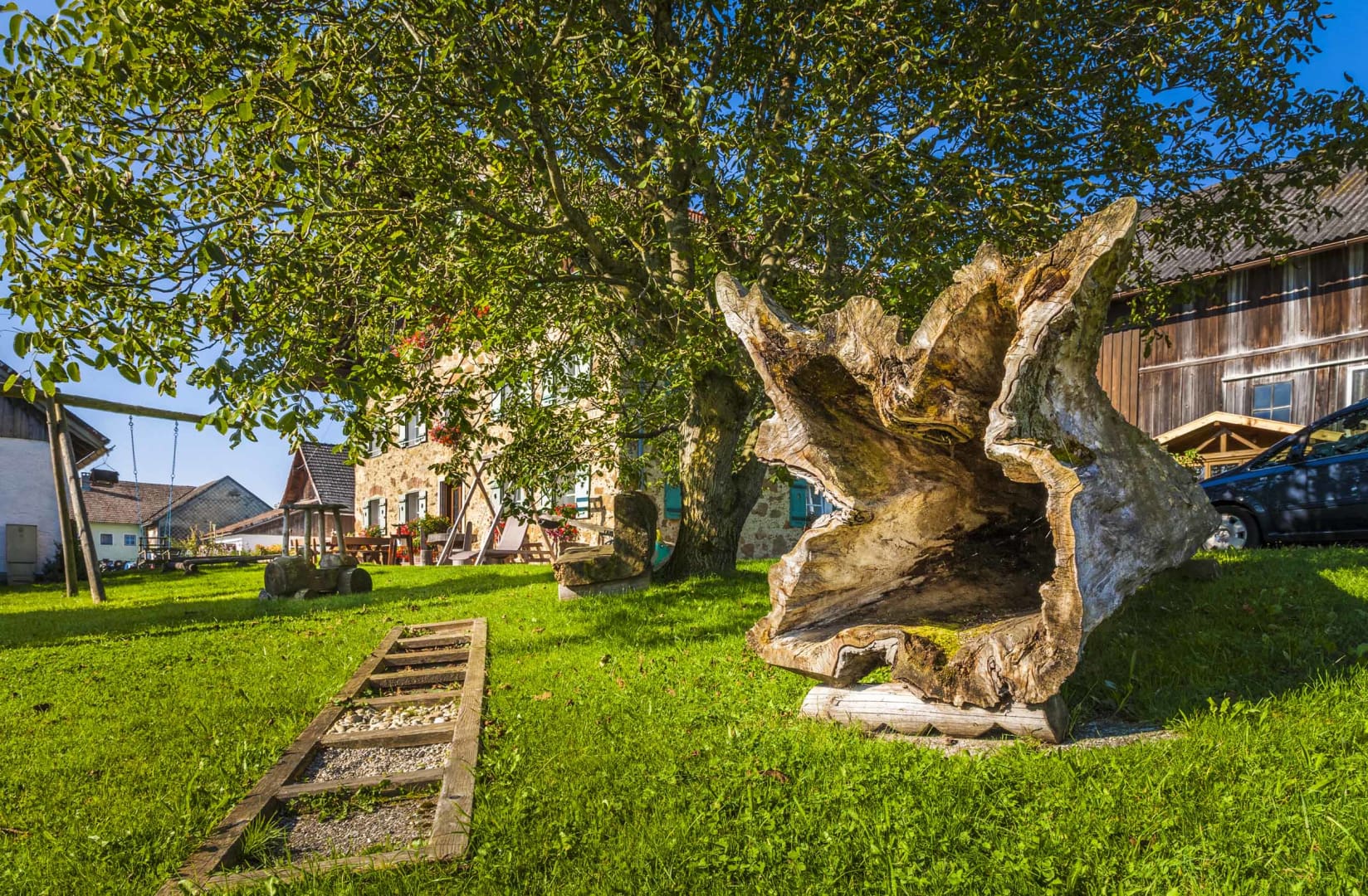 Für Abenteuerlustige wartet der Hochseilpark Seeham mit Kletterparcours in den Baumkronen. Wander- und Radwege starten direkt beim Hof, und bei warmem Wetter kannst du mit den Kindern auf dem Spielplatz toben oder die Tiere füttern.