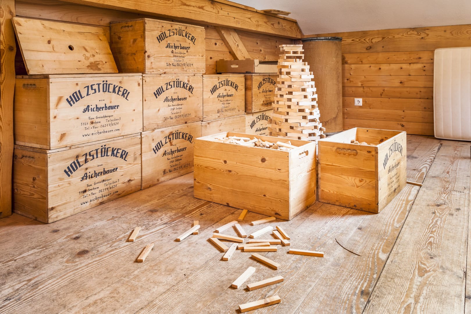 Ein echtes Highlight für unsere kleinen Gäste sind die Holzstöckerl – natürliche Bauklötze aus unbehandeltem Fichtenholz aus unserem eigenen, biologisch bewirtschafteten Wald. Holz, das traditionell im Winter geschlägert und nach angemessener Trocknungszeit verarbeitet wird.