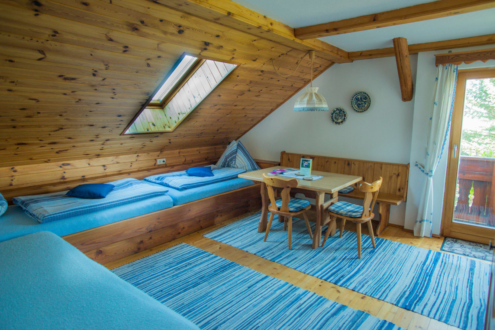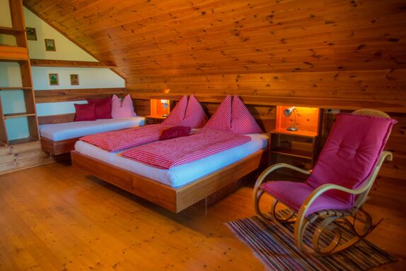 Die gemütliche Ferienwohnung Giebeltreppe aus Vollholzmöbeln über zwei Ebenen mit herrlichem Panoramablick ist 52m² groß und verfügt über: