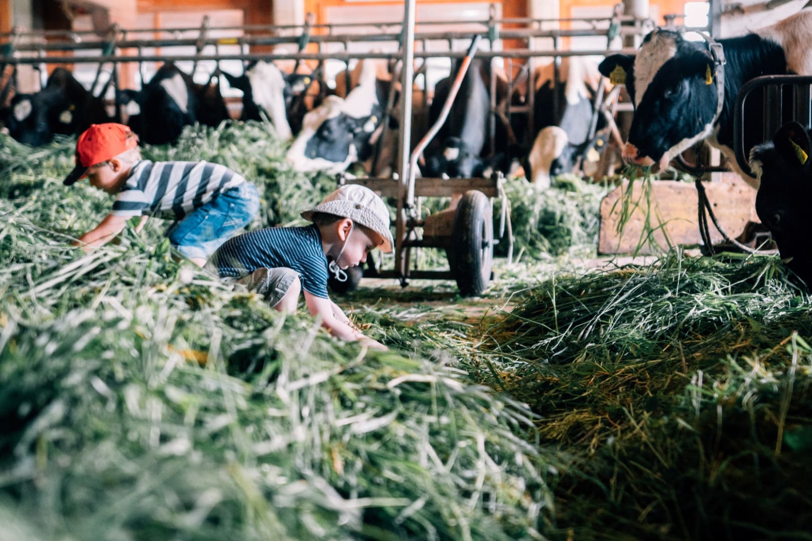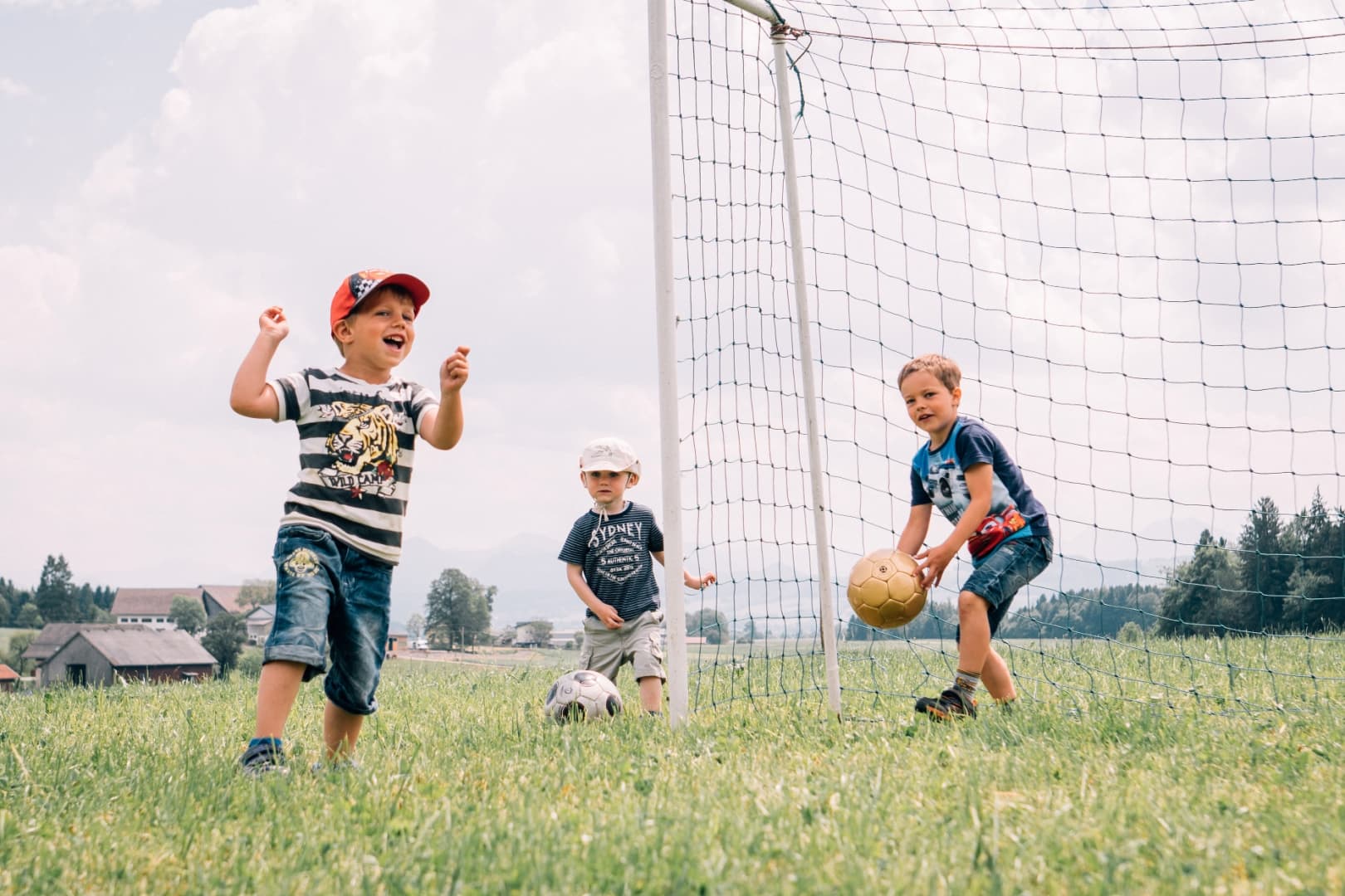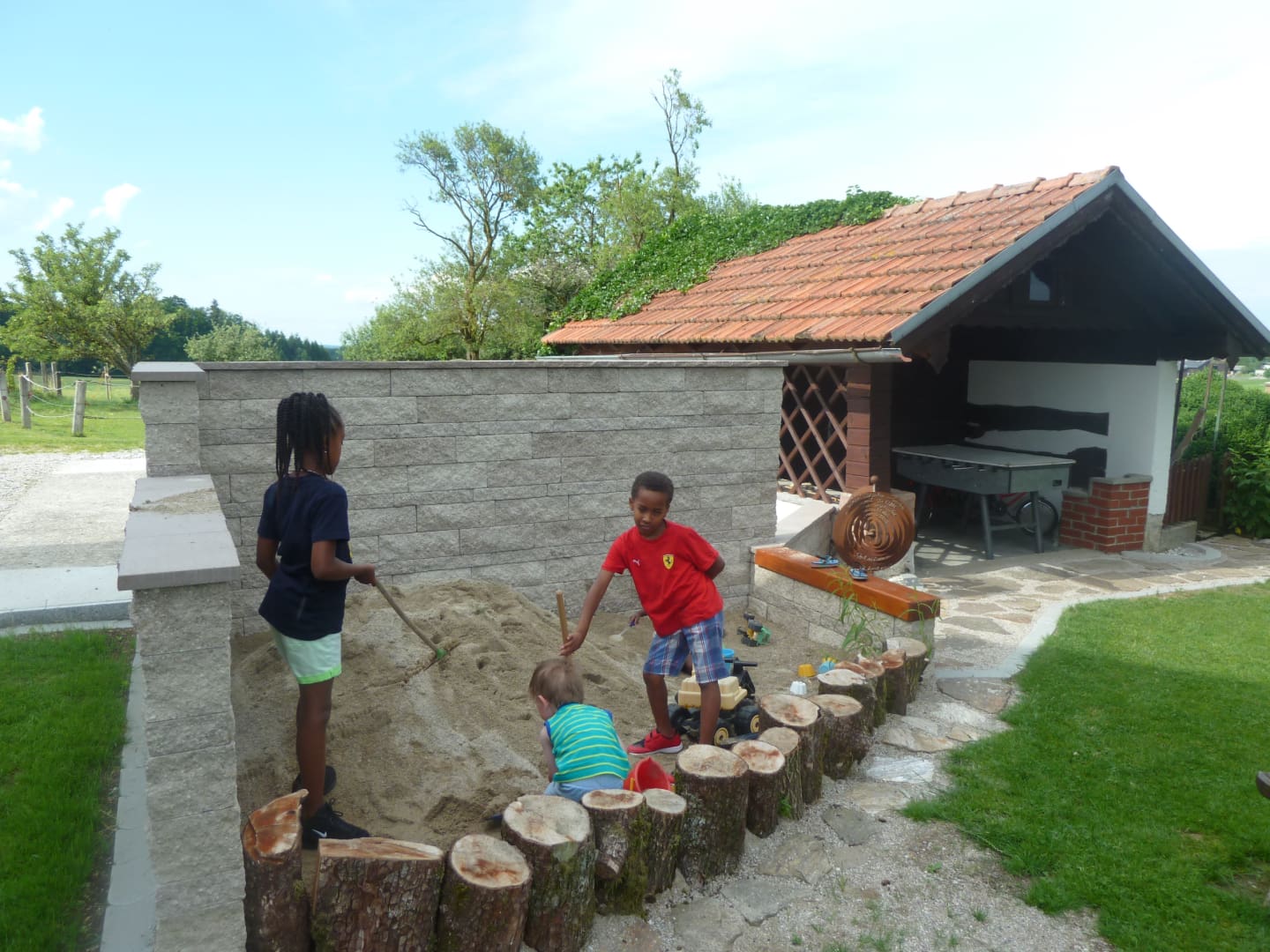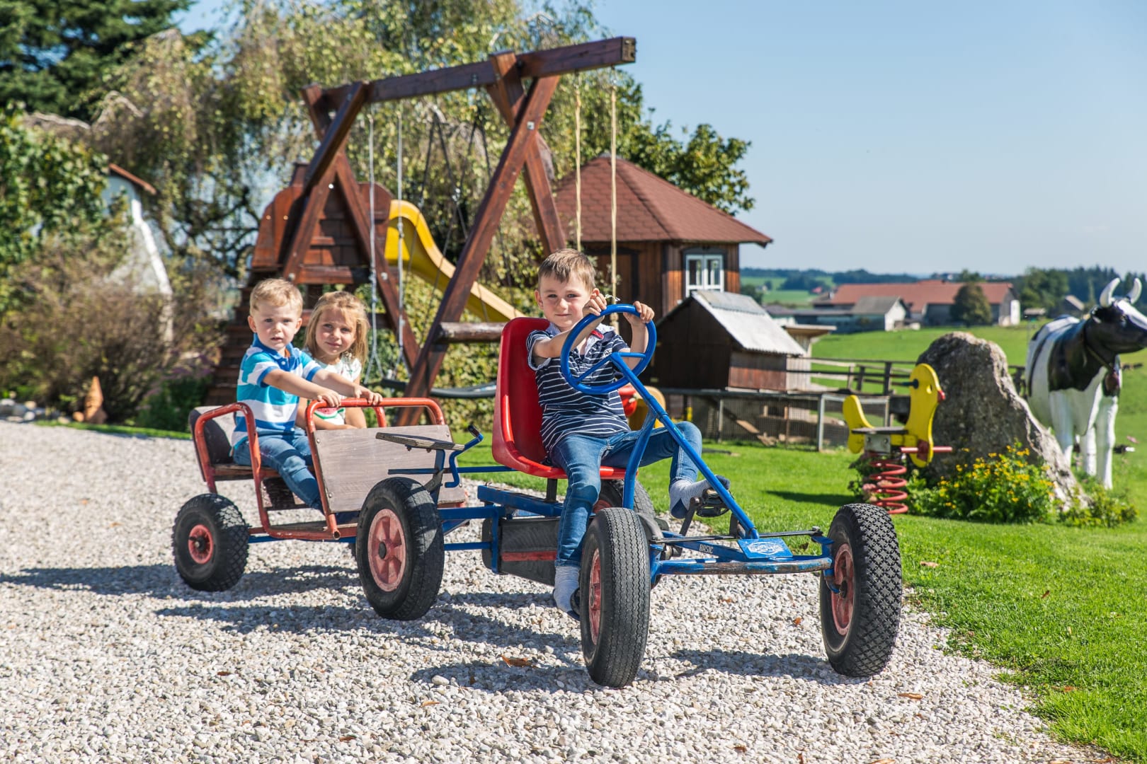 Schneeweiße Hänge rund um den Hof für Abfahrten mit den Bob und zum Schneemann bauen.