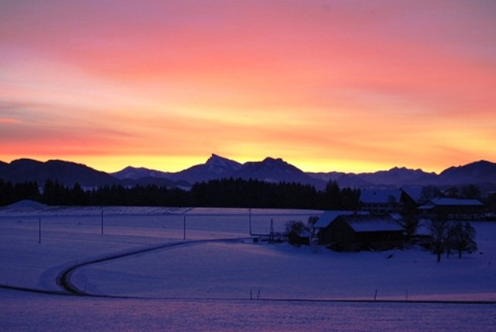 Genießen Sie den Ausblick auf die wunderschön verschneiten Berge.