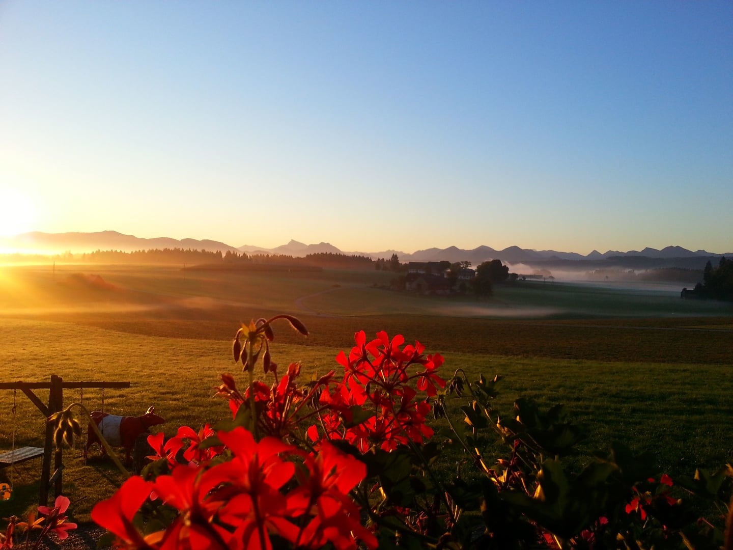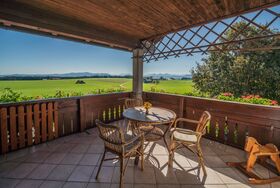 Die Ferienwohnung Gaisbergblick ist 58m² groß und verfügt über ein eigenes Elternschlafzimmer. Der Balkon mit gemütlicher Sitzecke und herrlichem Panoramablick in die Bergwelt lädt zum verweilen ein. Es sind ein paar Bauernhofgeräusche hörbar, da sie sich die Wohnung zum Teil über dem Kuhstall befindet.