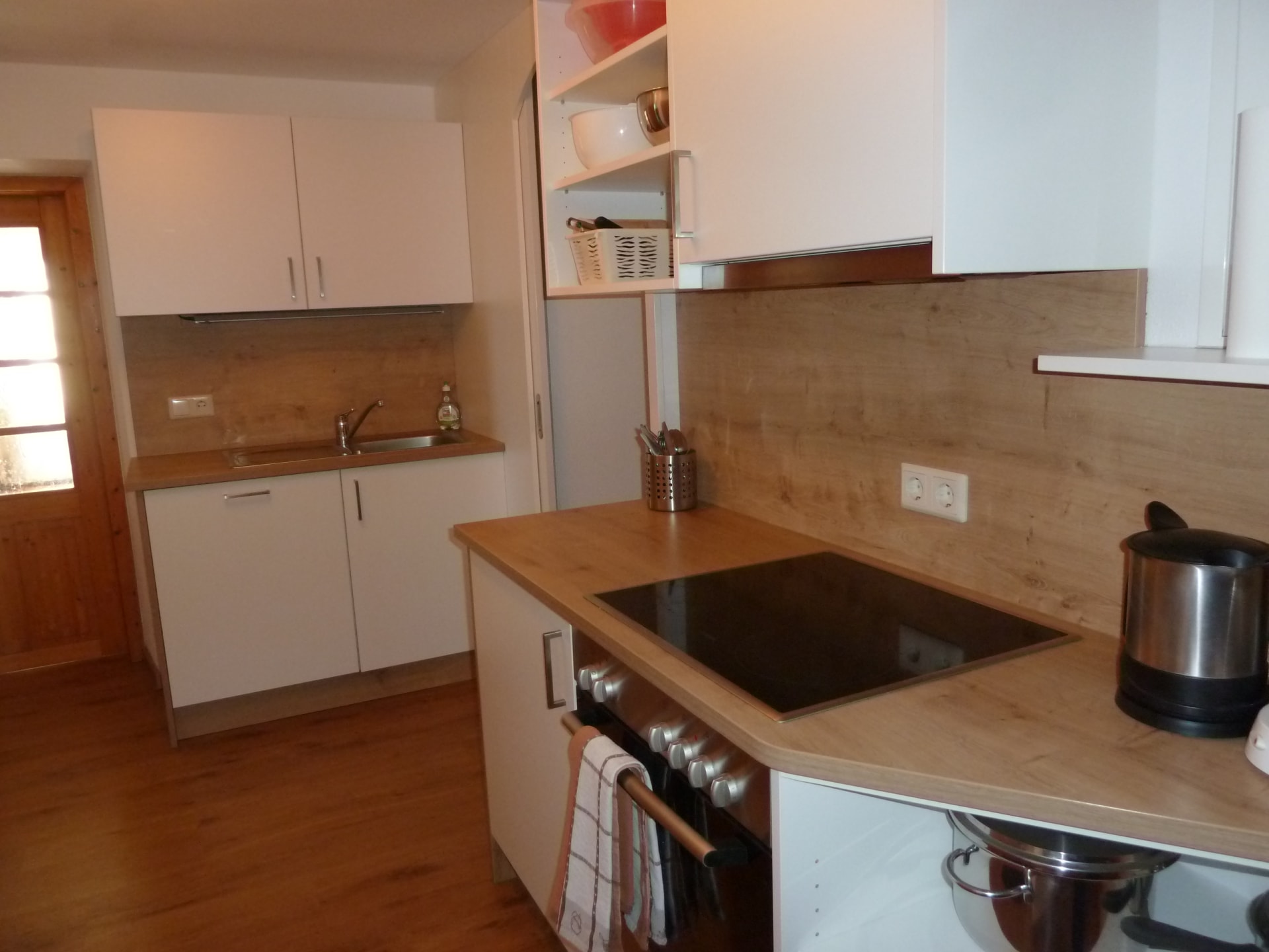 • Wohnraum mit Küche, Geschirrspüler, Filterkaffeemaschine, Wasserkocher und Toaster