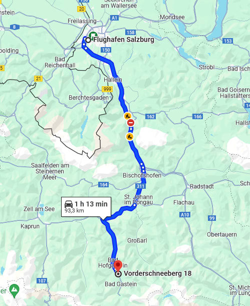 • Anreise mit Zug möglich (nächster Bahnhof: Bahnhof Bad Gastein, Bahnhof Bad Hofgastein, ca. 3,6 km entfernt)