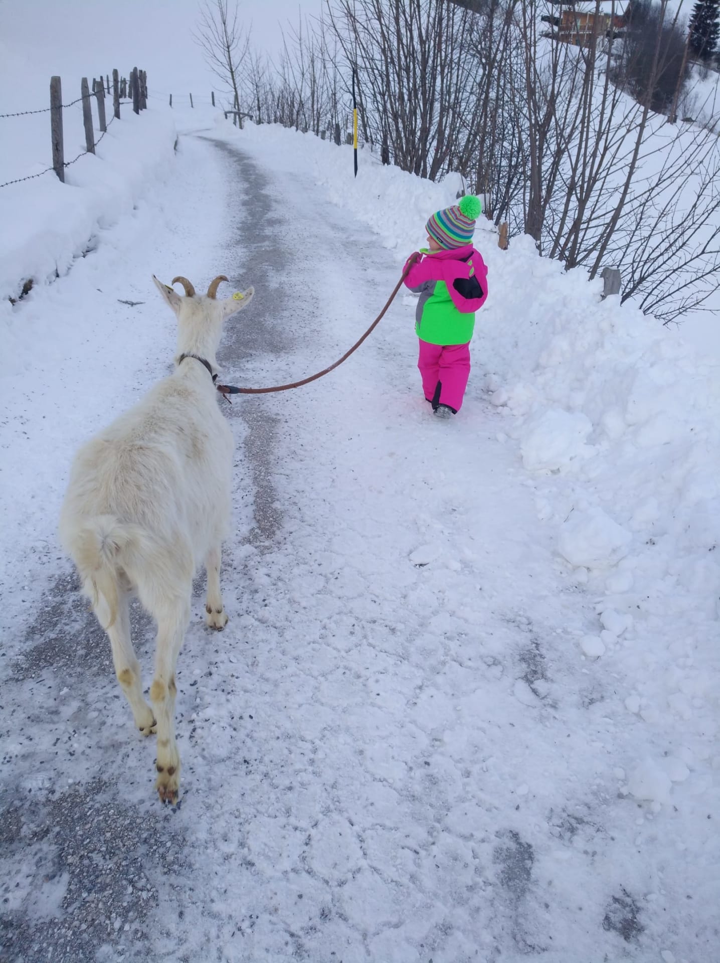 Tierfreunde kommen auf unserem ganzjährig bewirtschafteten Bauernhof voll auf ihre Kosten: Holstein-Milchkühe, Kälber, Schweine, Ziegen, Katzen, Hasen, Ponys, Ziegen, Esel, Hühner, Laufenten, Noriker Pferde und die liebe Hündin Nelly. Der Kinder-Streichelstall - die neue Heimat der Kleintiere - sorgt für besondere Tier-Erlebnisse für Groß und Klein. Auf Wunsch sind auch Tierspaziergänge mit dem Esel, Pony oder Ziegen im Schnee gerne möglich. Verleih von Schneeschuhen, Rodel und Schlitten gerne kostenfrei möglich.