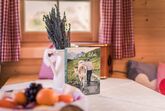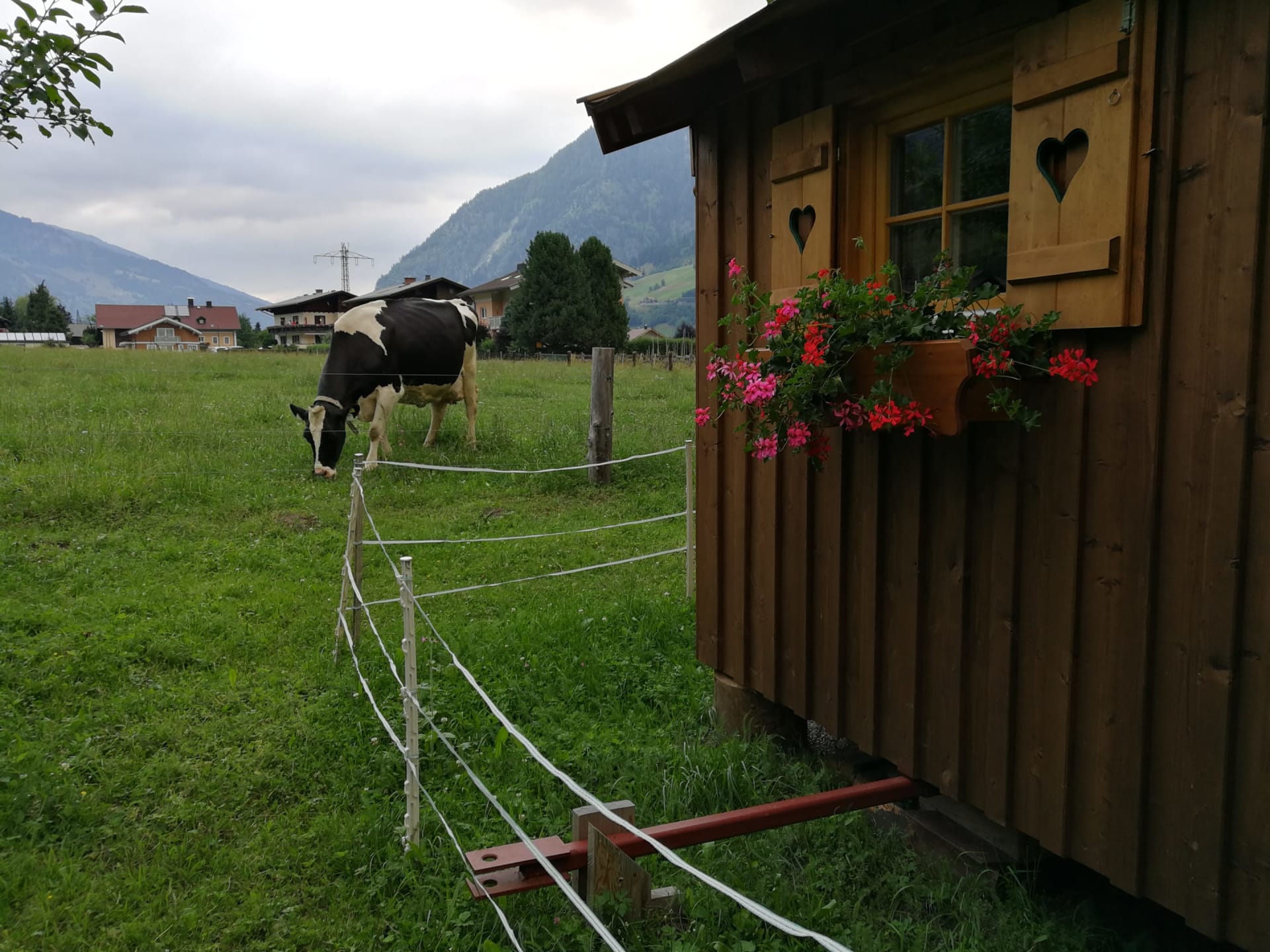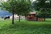 Dusche und WC befinden sich nicht in der Hütte, sondern im nahegelegenen Bauernhaus (ca. 60 m) bzw. in Ihrem Appartement.