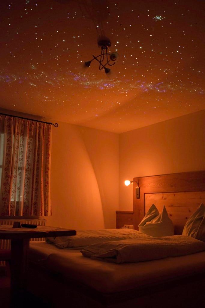 Willkommen im STERNENHIMMEL-ZIMMER: In den Betten zu liegen und sich nachts wie unter freiem Himmel zu fühlen! Ein einzigartiges Erlebnis. Gemütliche, geräumige Gästezimmer aus Naturholz - vom Tischler gefertigt. W-lan/Internetzugang kostenfrei. Freier Zugang zum Balkon im 1. Stock mit Panorama-Ausblick.