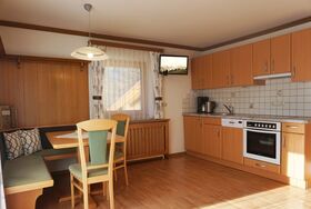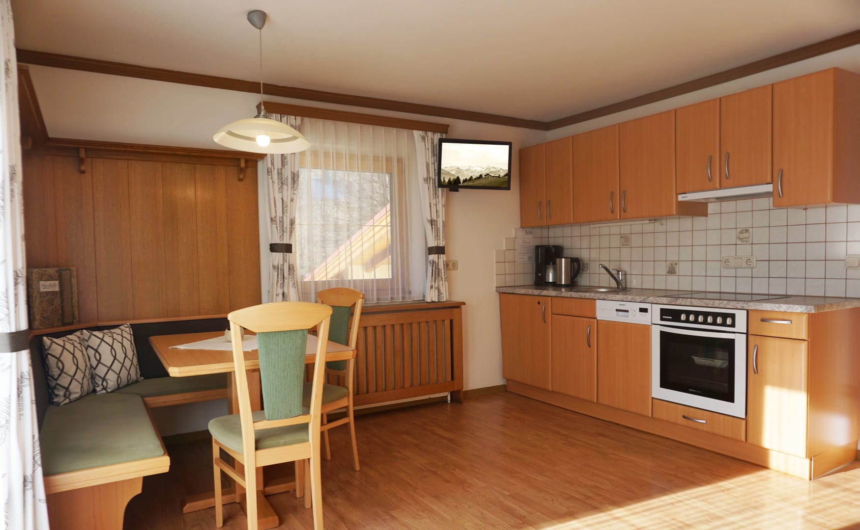 • große Wohnküche mit voll ausgestatteter Küche, großem Esstisch, gemütlicher Sitzgarnitur und Kabel-TV
