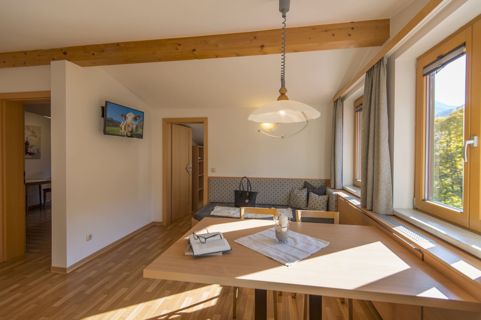 Gemütliches Appartement mit herrlichem Blick auf die Berge für 2 bis 4 Personen, 50 m². Komplett ausgestattet mit Handtüchern, Bettwäsche, E-Herd, Kühlschrank, Geschirrspüler, Wasserkocher, Toaster und Nespresso-Kaffeemaschine.