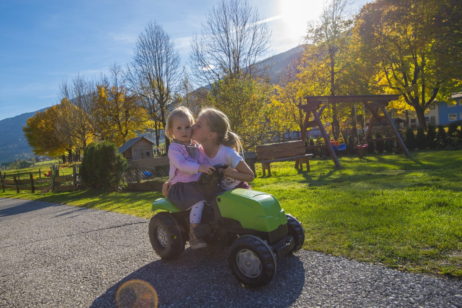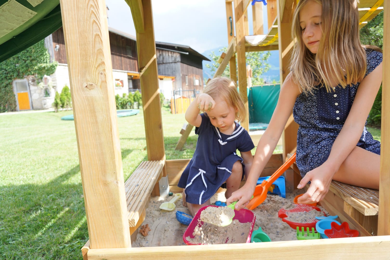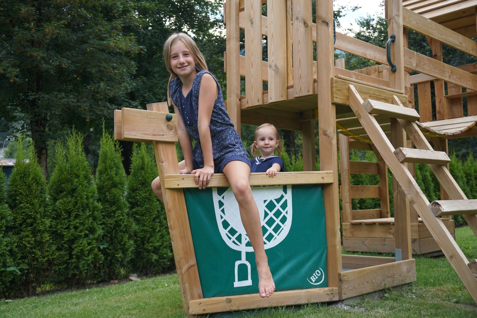 Unser liebevoll gestalteter Garten mit tollem Kinderspielplatz und Streichelzoo lässt Kinderherzen höher schlagen.