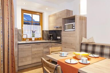 Diese Wohnung mit 58 m² und BALKON verfügt über zwei Schlafzimmer mit jeweils einem Doppelbett und ggf. einer Schlafcouch, einen Vorraum mit Garderobe, einem Bad mit Dusche/WC und Haarfön sowie über eine gut ausgestattete Küche mit gemütlicher Sitzecke. Die Küche ist mit Geschirrspüler, Kühlschrank mit Gefrierschrank, E-Herd mit Backofen, Ceran-Kochfeldern und Dunstabzug, Mikrowelle, Kaffeemaschine, Wasserkocher, Stabmixer, etc., Kochutensilien und Geschirr ausgestattet. Radio mit CD-Player und USB-Anschluss. Bettwäsche, Hand- und Badetücher sind im Preis inkludiert. Kostenloses WLAN.  Kleinkindausstattung wird Ihnen gerne gratis bereitgestellt. Frühstückskorb mit hofeigenen Produkten möglich (Aufpreis).
