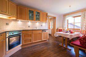 Diese Wohnung mit 55 m² verfügt über zwei Schlafzimmer mit jeweils einem Doppelbett und ggf. einer Schlafcouch, einen Vorraum mit Garderobe, einem Bad mit Dusche/WC und Haarfön sowie über eine gut ausgestattete Küche mit gemütlicher Sitzecke. Die Küche ist mit Geschirrspüler, Kühlschrank mit Gefrierschrank, E-Herd mit Backofen, Ceran-Kochfeldern und Dunstabzug, Mikrowelle, Kaffeemaschine, Wasserkocher, Stabmixer, etc., Kochutensilien und Geschirr ausgestattet. Ein Radio mit CD-Player und USB-Anschluss ist ebenfalls vorhanden. Bettwäsche, Hand- und Badetücher sind im Preis inkludiert. Kostenloses WLAN. Kleinkindausstattung wird Ihnen gerne gratis bereitgestellt. Frühstückskorb mit hofeigenen Produkten ist möglich (Aufpreis).