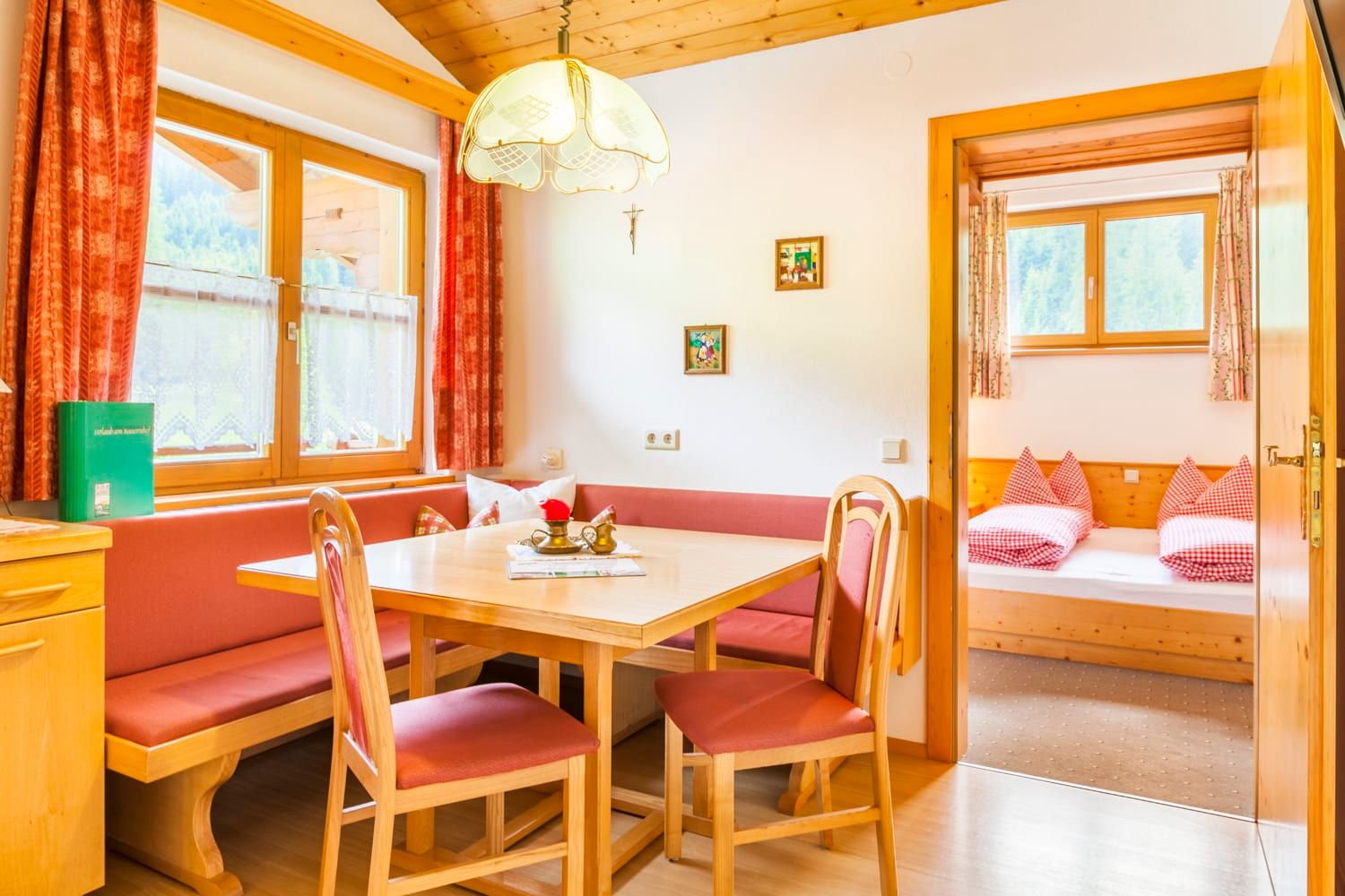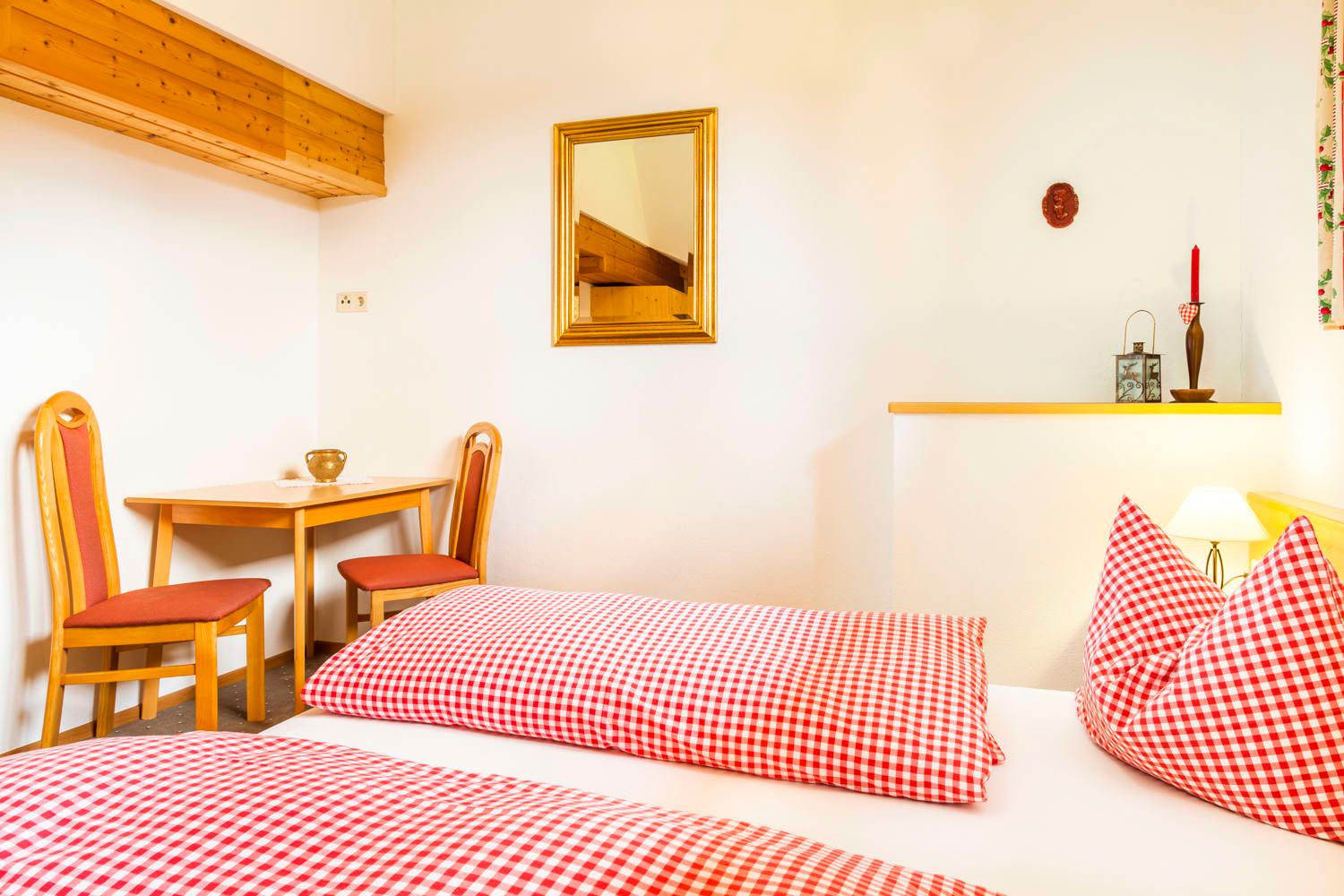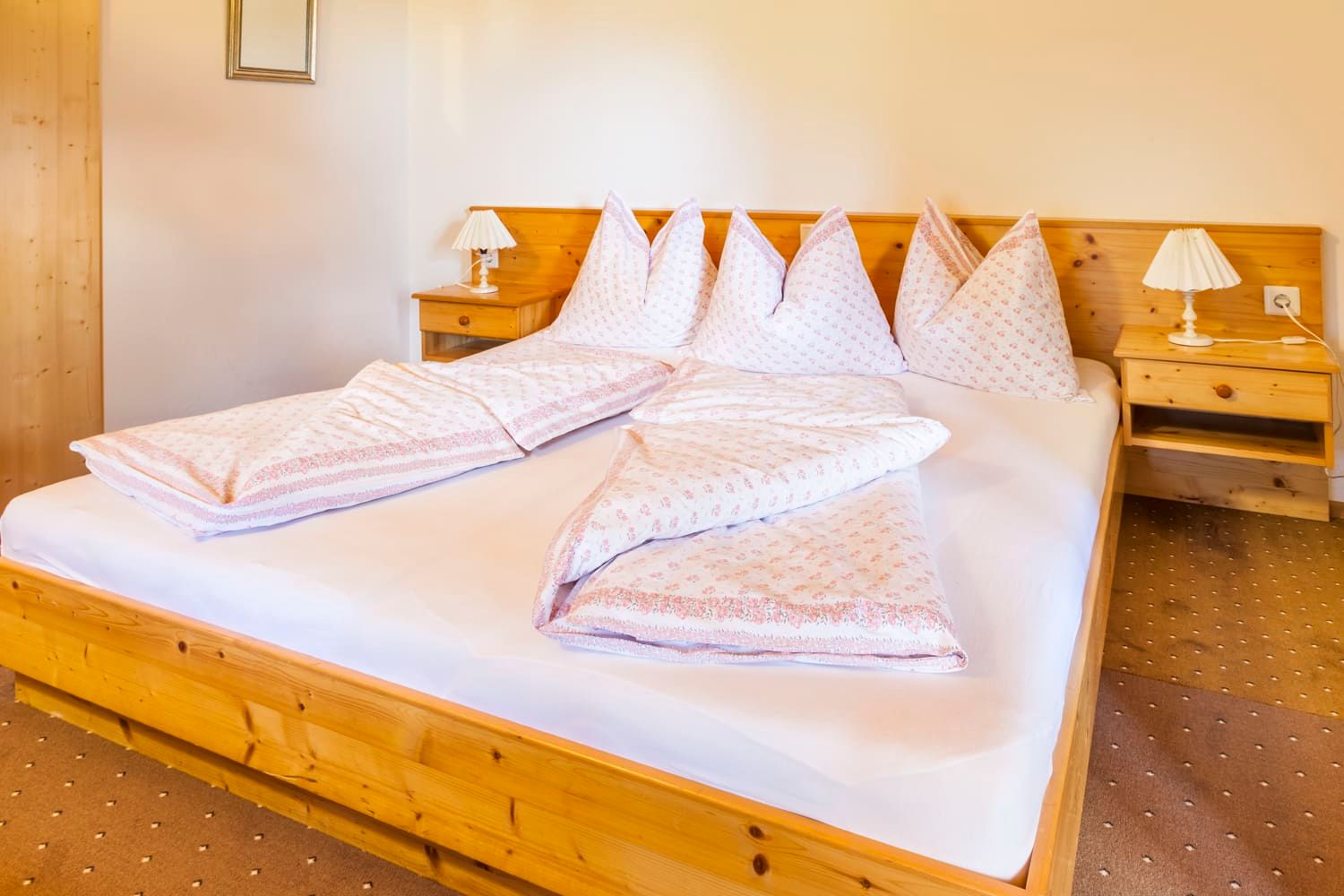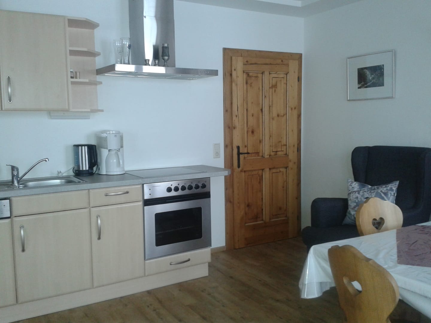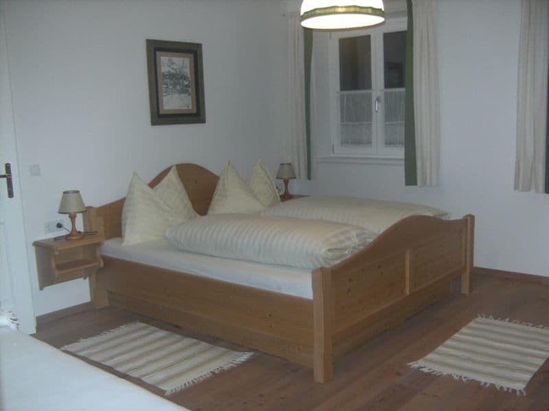 Wir haben 3 Ferienwohnungen, davon sind 2 FeWo im Bauernhaus. Im Bauernhaus sind Hunde willkommen. Die 3. FeWo ist für 2-6 Personen und ist im Nebenhaus, ist Parterre und hat einen eigenen Eingang. In dieser FeWo sind Hunde nicht erlaubt. Man kann die 2 Wohnungen im Bauernhaus, mit einem weiteren Zimmer mit DU/WC im 1. Stock erweiten auf 7 Personen. In allen 3 Wohnungen gibt es eine Spülmaschine. Zwei Doppelzimmer mit Balkon DU/WC und Sat/TV und einem Aufenthaltsraum mit Kochgelegenheit. 1 Familienzimmer mit DU/WC und Balkon und Sat/TV bis zu 5-6 Personen möglich. Brötchenservice, hofeigene Produkte.