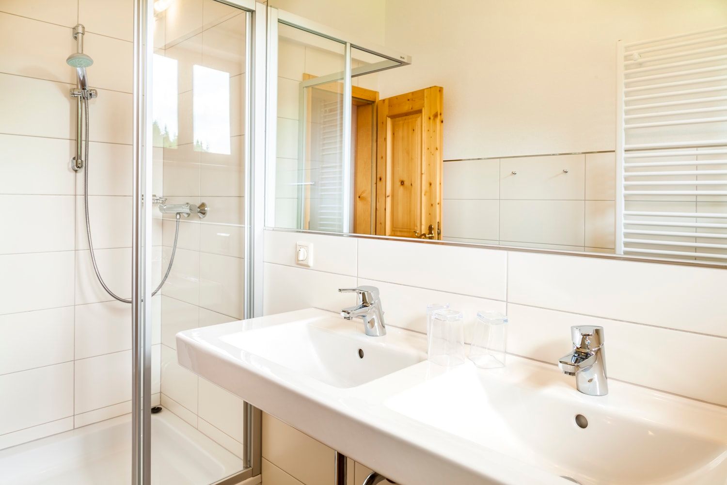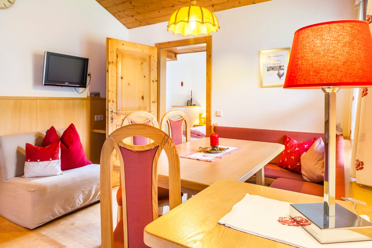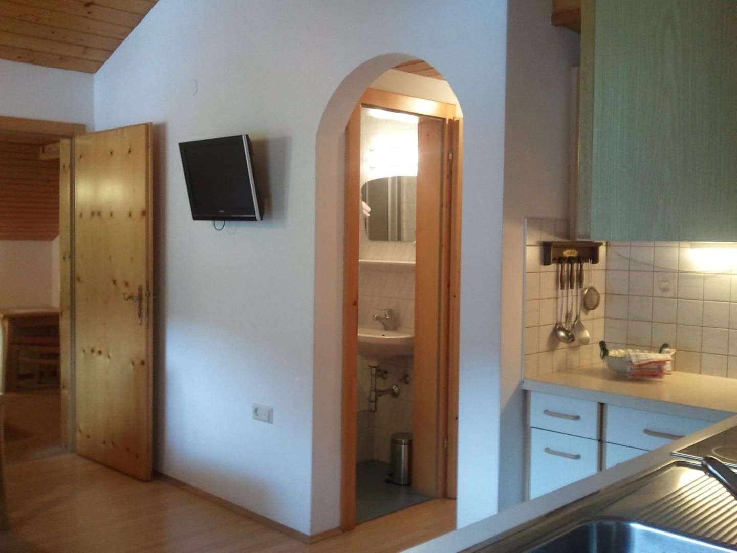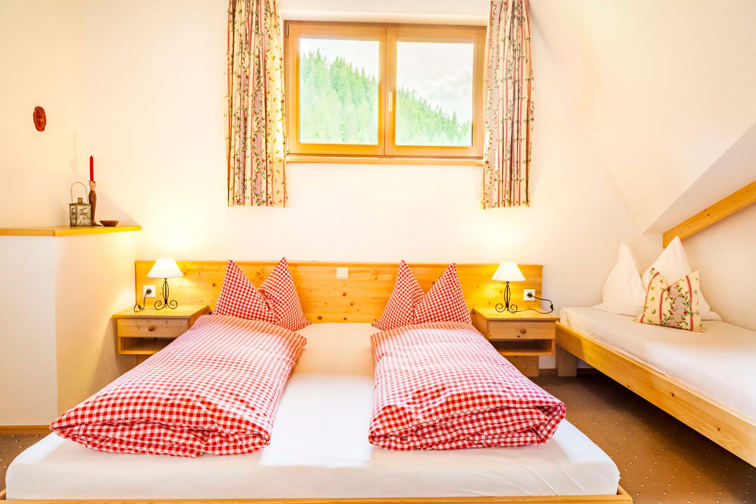 Wir haben 3 Ferienwohnungen, davon sind 2 FeWo im Bauernhaus. Im Bauernhaus sind Hunde willkommen. Die 3. FeWo ist für 2-6 Personen und ist im Nebenhaus, ist Parterre und hat einen eigenen Eingang. In dieser FeWo sind Hunde nicht erlaubt. Man kann die 2 Wohnungen im Bauernhaus, mit einem weiteren Zimmer mit DU/WC im 1. Stock erweiten auf 7 Personen. In allen 3 Wohnungen gibt es eine Spülmaschine. Zwei Doppelzimmer mit Balkon DU/WC und Sat/TV und einem Aufenthaltsraum mit Kochgelegenheit. 1 Familienzimmer mit DU/WC und Balkon und Sat/TV bis zu 5-6 Personen möglich. Brötchenservice, hofeigene Produkte.
