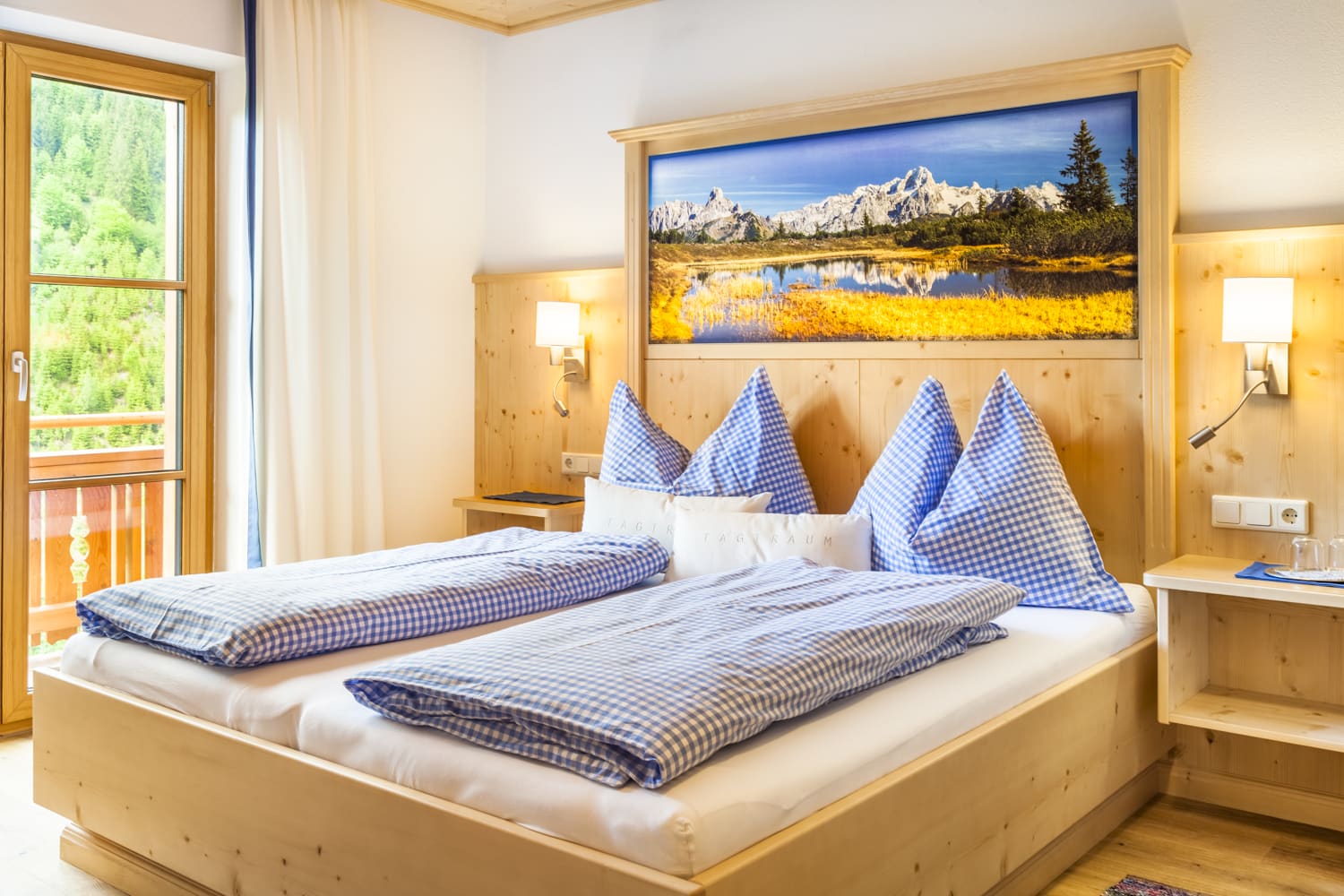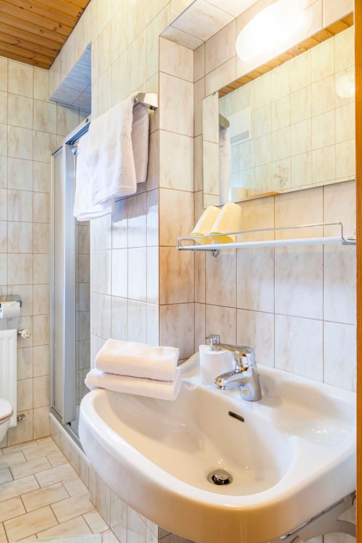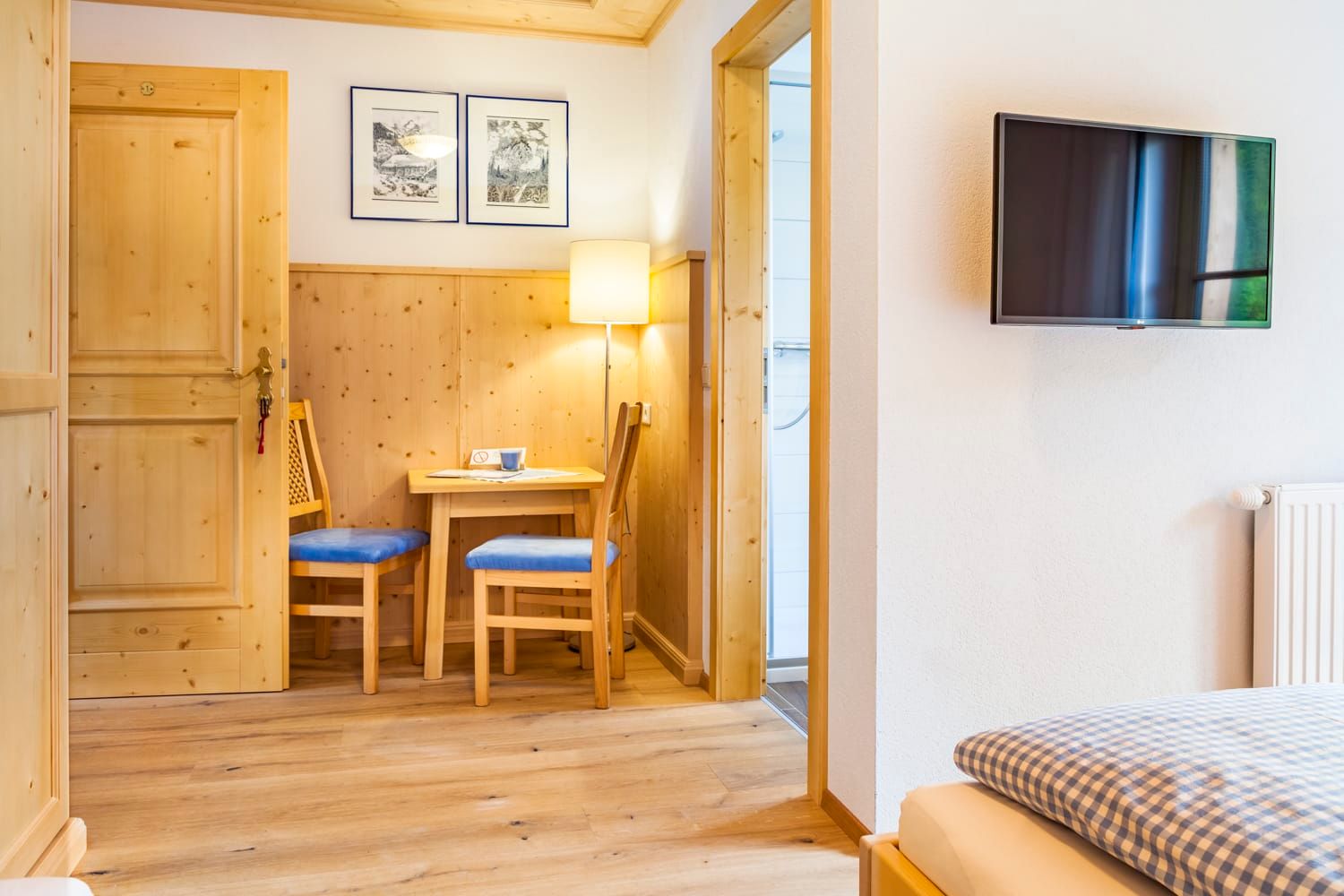 Großzügiges Familienzimmer mit zwei getrennten Schlafzimmern WC Dusche , Balkon und in jedem Schlafzimmer ein Fehrnseher und in einem Zimmer ein Waschbecken. Kleiner Vorraum mit Kühlschrank Wasserkocher und Kaffeemaschine. Dazu gibt es im Erdgeschoß eine Wohnküche für das Familienzimmer alleine.