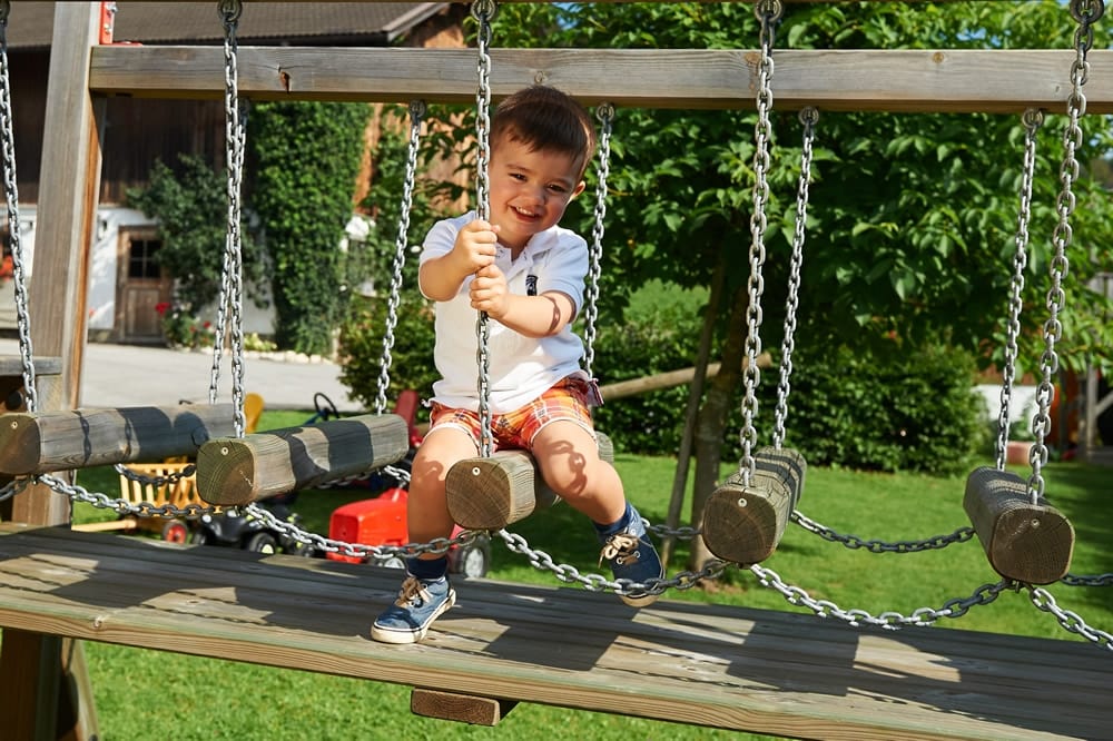 Auch im Winter gibt es für Kinder viel zu erleben: Tiere am Hof füttern, im Schnee toben oder gleich vor dem Haus einen Schneemann bauen.