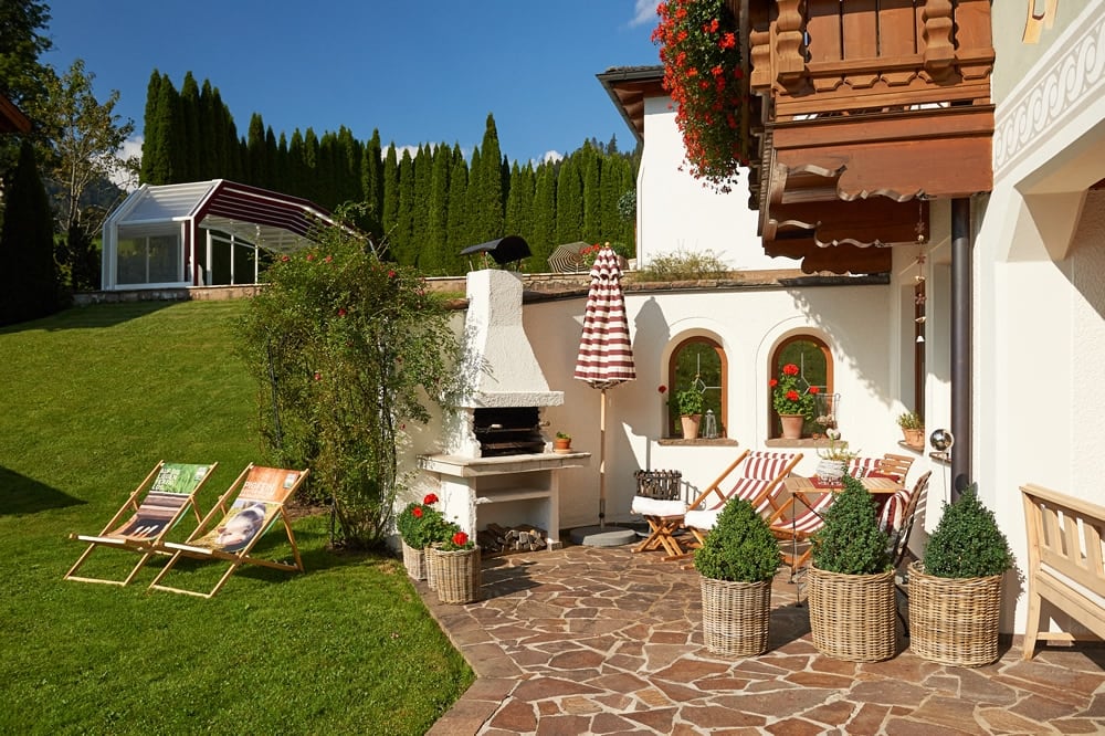 Nach einem aufregenden Tag auf der Piste entspannst Du in unserem Garten mit verschneiter Winterkulisse oder im kleinen Wellnessbereich mit Sauna.