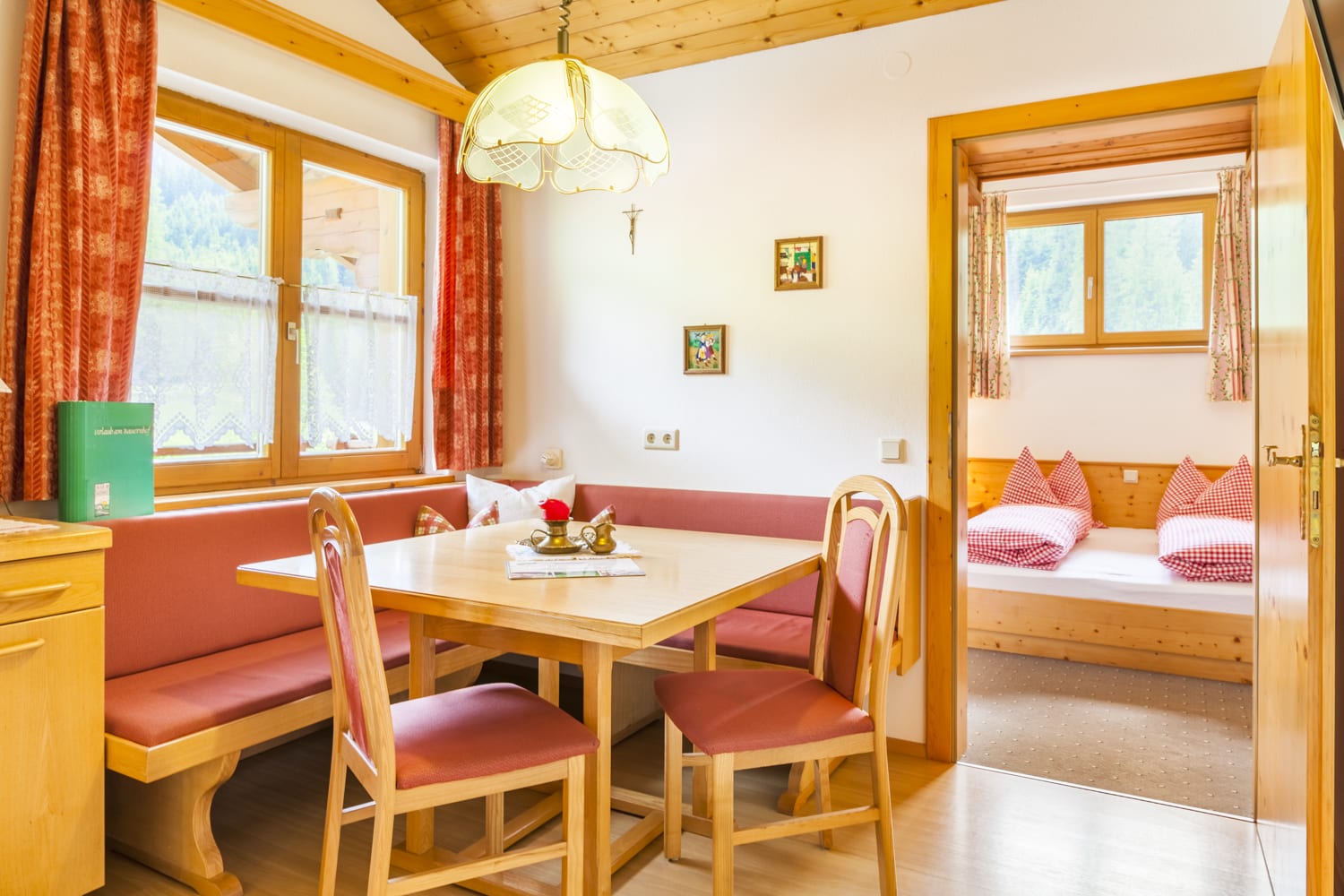 Ruhige Fewo.Sonnenuntergang im 2. Stock mit 2 getr. Schlafzimmern DU/WC getrennt, eine Wohnküche mit eigenem Balkon und einen kleinen Vorraum, also eine abgeschlossene Wohnung. Erweiterbar mit einem DU/WC Dreibettzimmer auf 7 Personen im 1. Stock. Haustiere sind in dieser Ferienwohnung erlaubt.